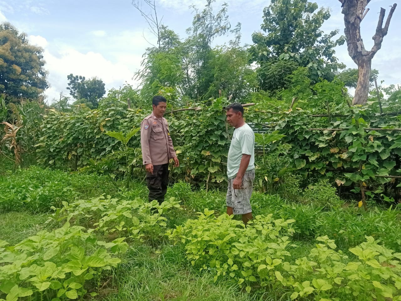 Lahan pertanian milik Salmi, yang ditanami jagung dan berbagai tanaman pangan lainnya, menjadi fokus kegiatan pemantauan. Bhabinkamtibmas memberikan motivasi serta dorongan kepada petani agar terus memanfaatkan lahan secara optimal guna meningkatkan kesejahteraan ekonomi.