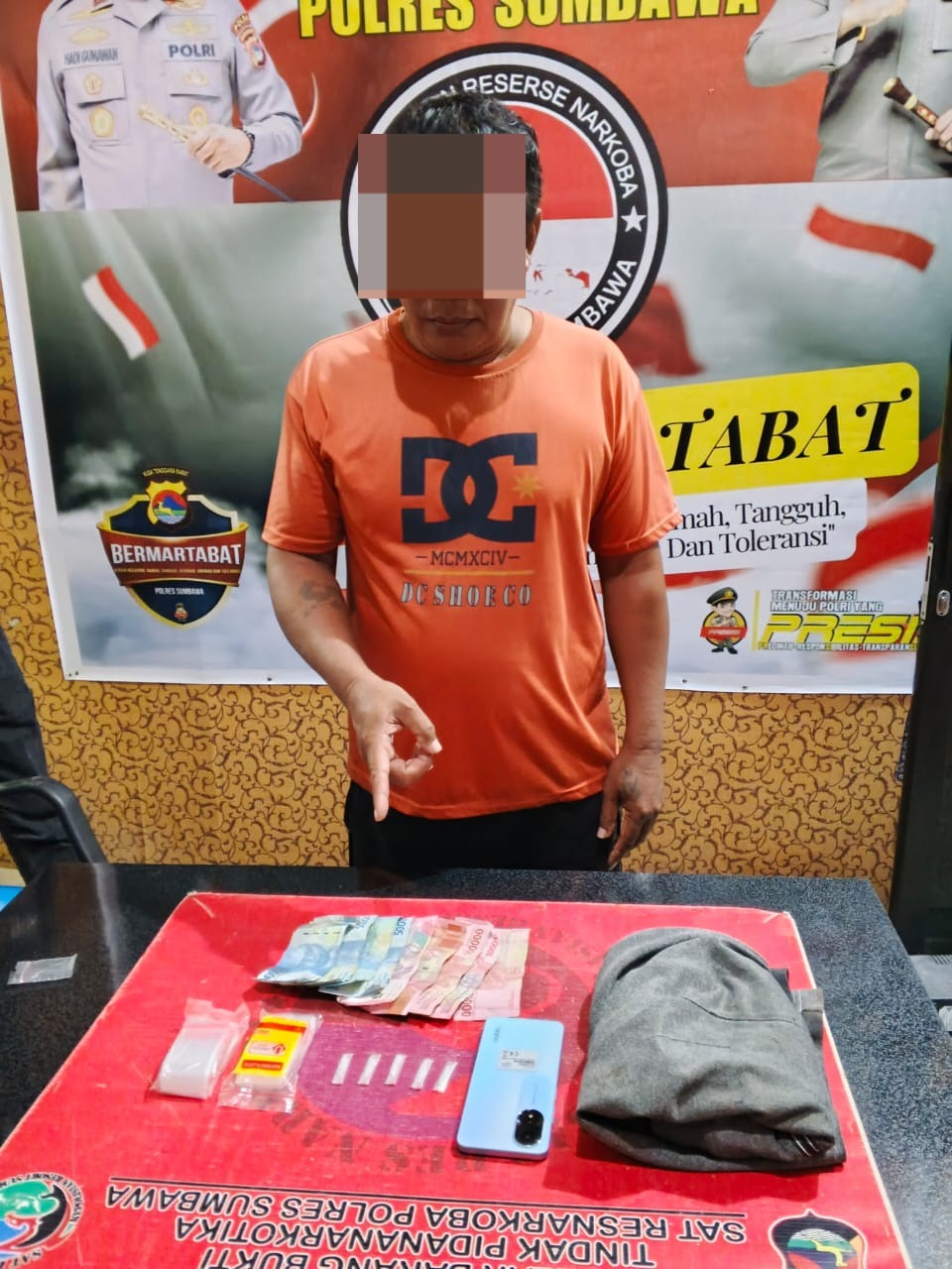 Sumbawa Besar –NTB, Tim Operasional Sat Resnarkoba Polres Sumbawa berhasil mengungkap tindak pidana penyalahgunaan narkotika jenis sabu dengan mengamankan seorang pria berinisial OKT (48), warga asal Kecamatan Lopok, pada Senin sore, 3 Maret 2025, pukul 17.50 WITA. Penangkapan tersebut berlangsung di Desa Sepakat, Kecamatan Plampang, Kabupaten Sumbawa.