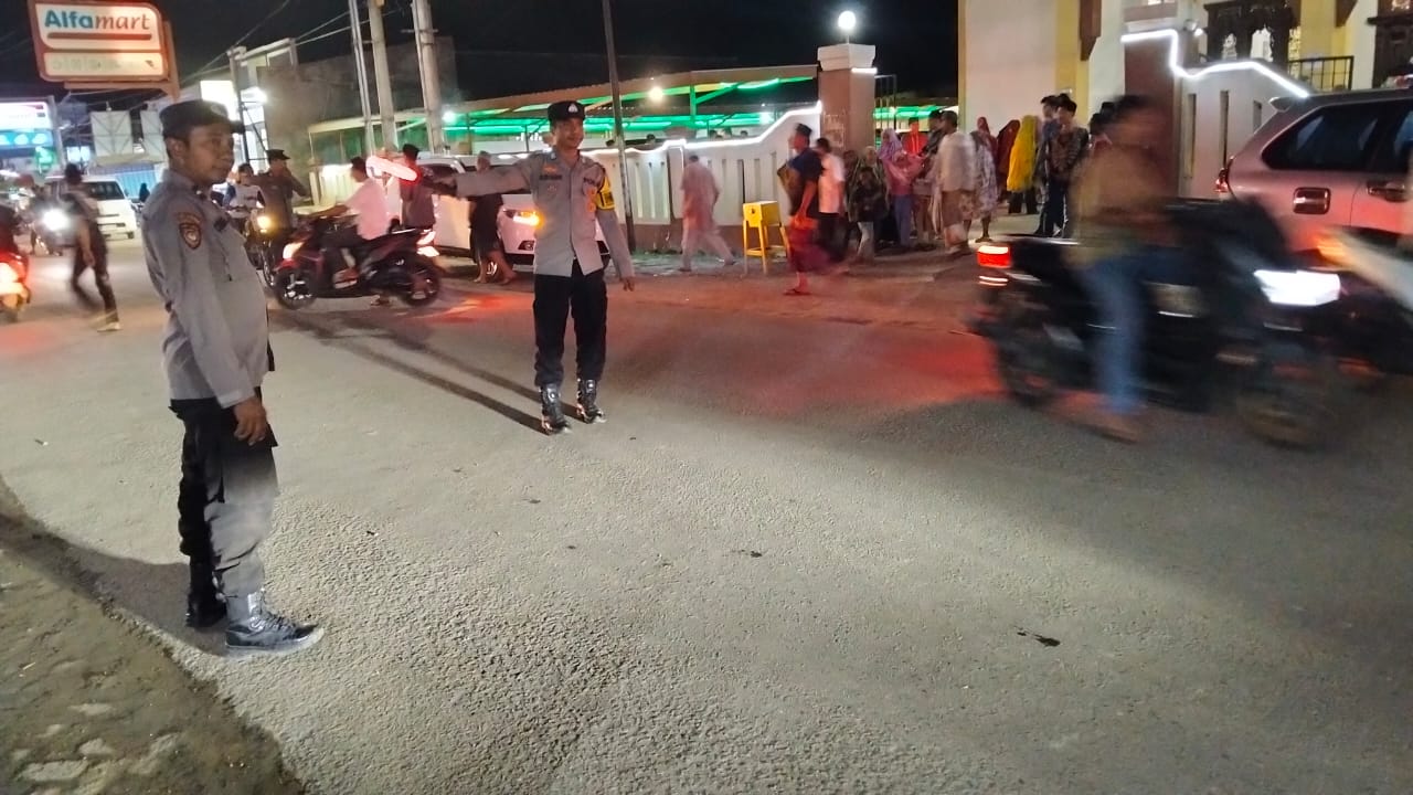 Masih Kasi Humas, selain itu, masyarakat yang hendak ke masjid dan menyeberang jalan maka petugas membantu menyeberangkan sehingga masyarakat merasa aman dari padatnya arus lalu lintas.