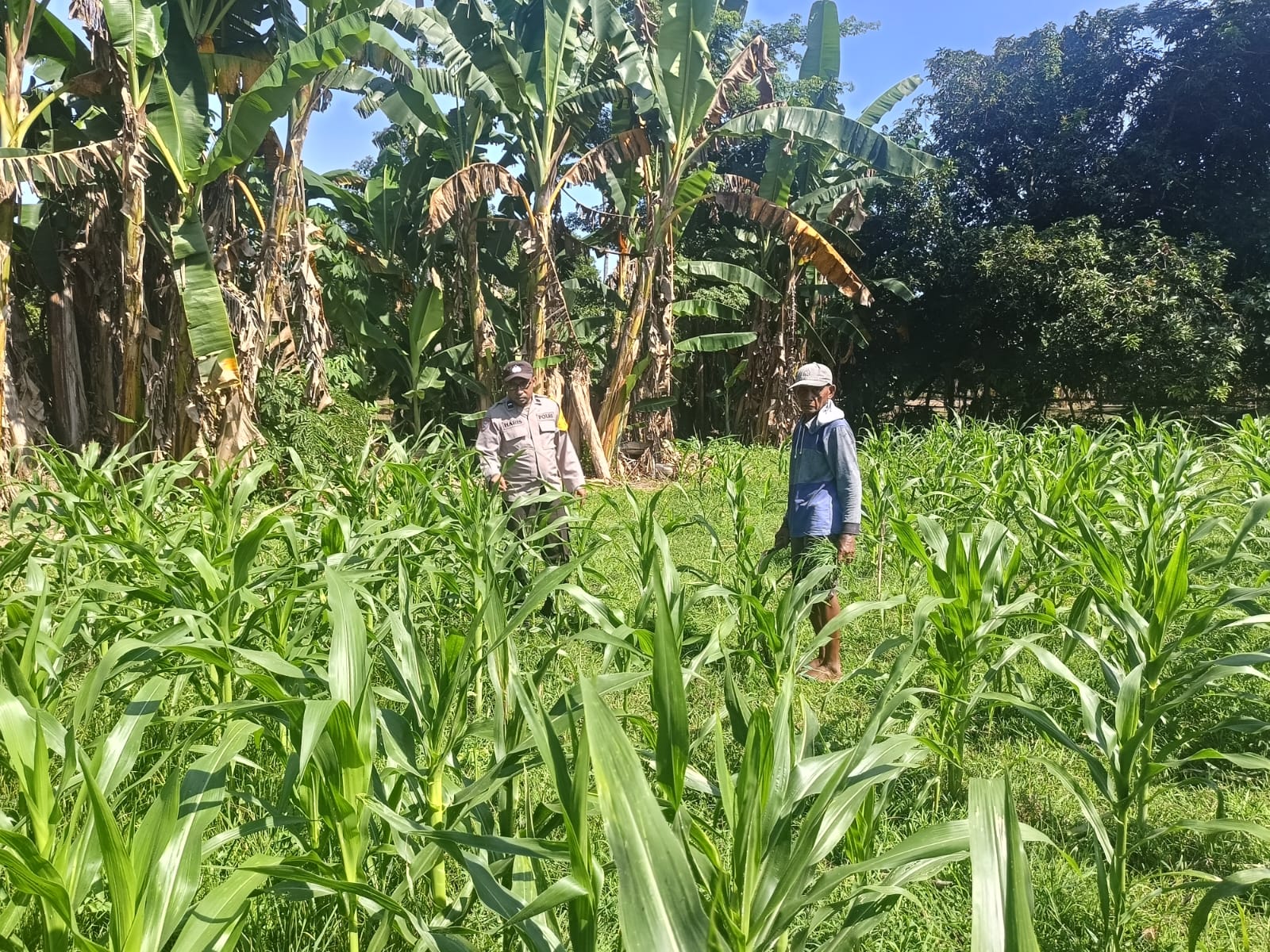 Dompu, 6 Maret 2025 – Dalam upaya mendukung Program Ketahanan Pangan Nasional menuju Indonesia Emas 2045, Bhabinkamtibmas Desa Nowa, Aipda Haris Nasution, melaksanakan pemantauan lahan jagung dan pekarangan milik warga binaan, Bapak Ismail, di Dusun Nowa Selatan, Desa Nowa, Kecamatan Woja, Kabupaten Dompu.