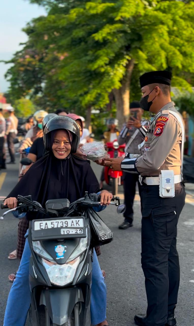 Pada Kamis, 6 Maret 2025, sore hari, Satlantas Polres Sumbawa membagikan lebih dari 100 paket takjil kepada pengendara yang melintasi Jalan Hasanuddin, tepatnya di depan Mapolres Sumbawa.