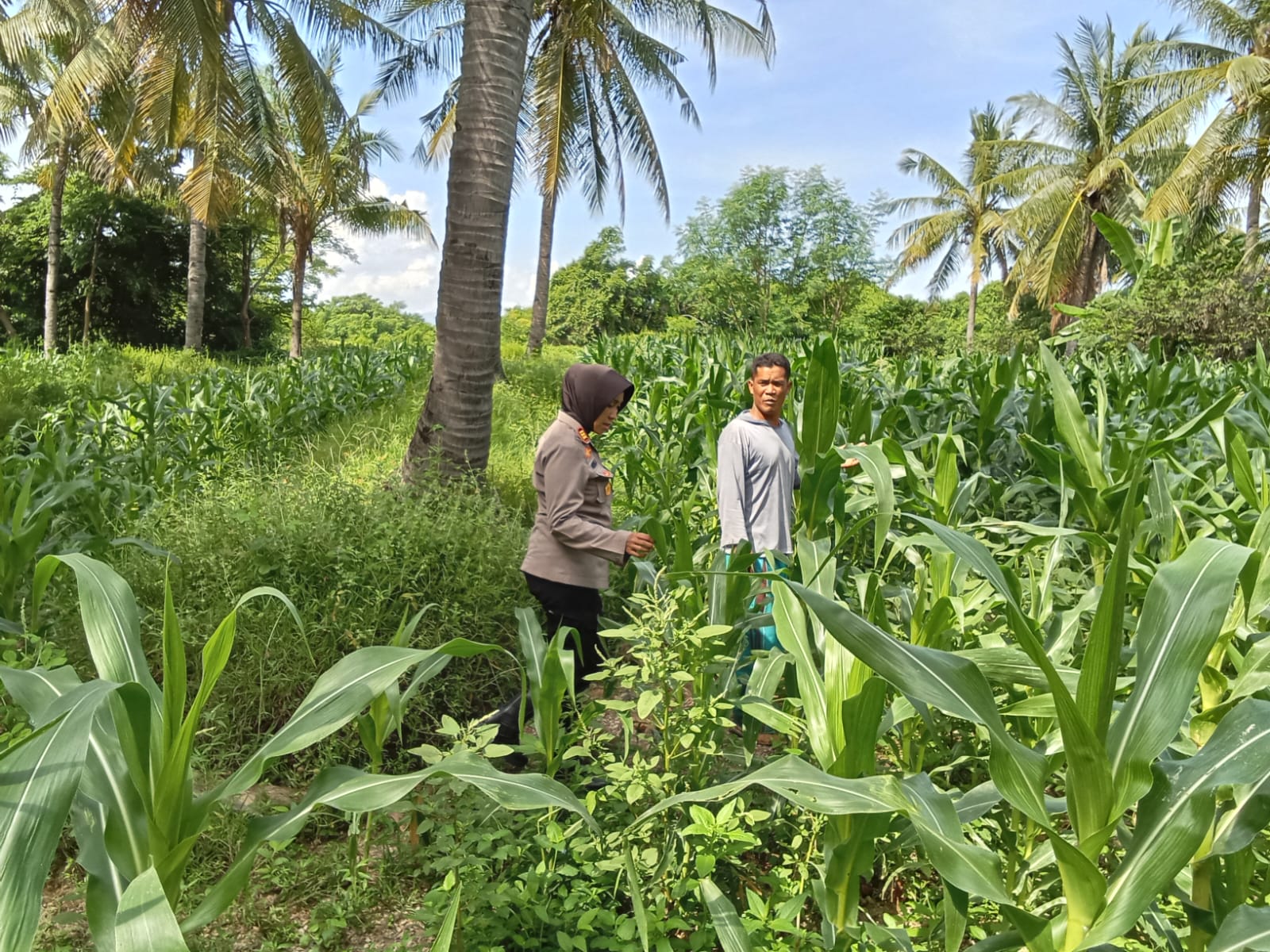Lombok Utara – Polsek Gangga melaksanakan pengecekan lahan pertanian tumpang sari di Dusun Sejuik, Desa Rempek, Kecamatan Gangga, Jumat (7/3).