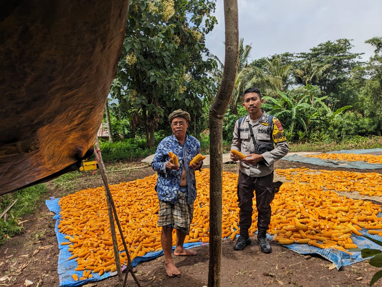 Bhabinkamtibmas juga mendengar keluhan dari masyarakat petani jagung tentang keadaan cuaca dengan curah hujan tinggi sehingga lama kering, dan petani akan menyimpan jagung hasil panennya ke gudang sambil menunggu pengeringan secara alami.