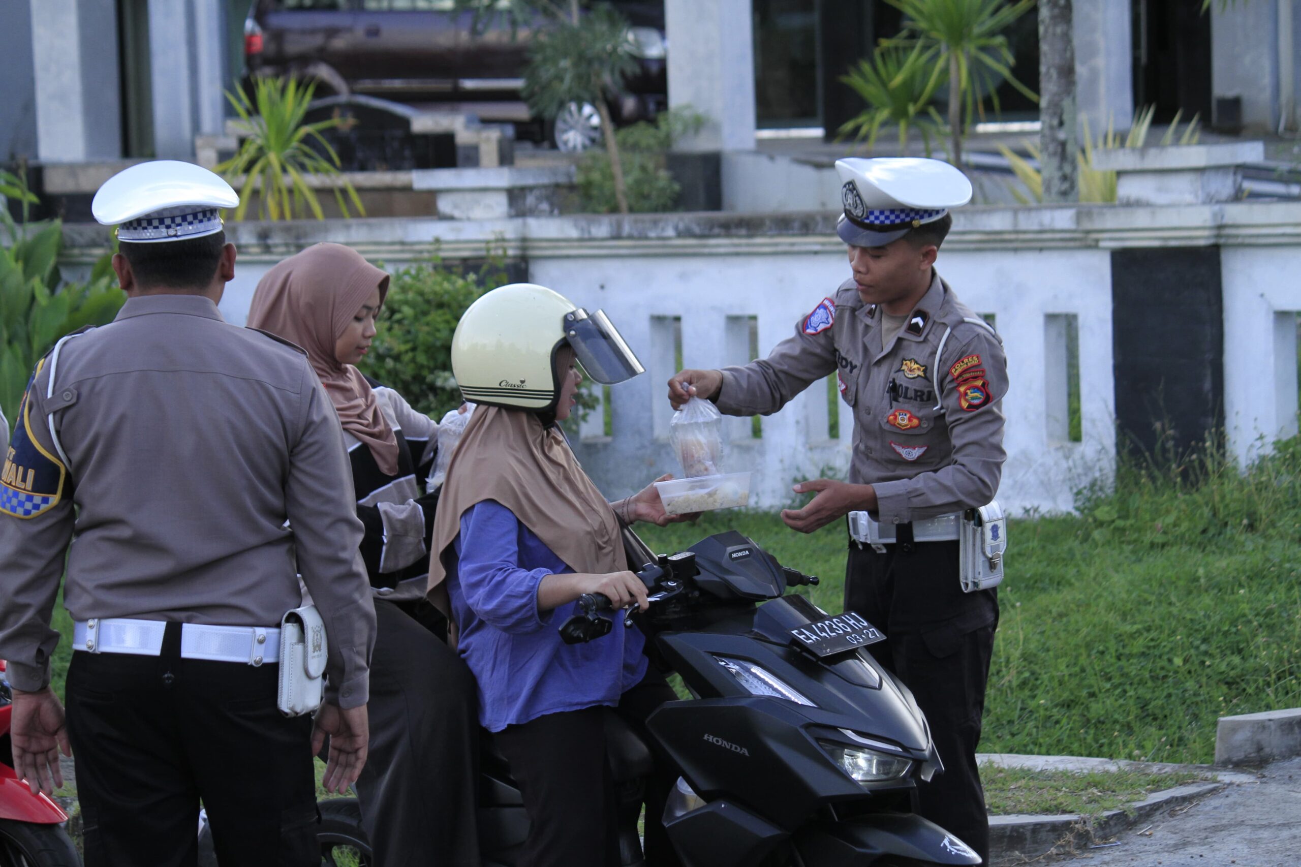 Sumbawa Barat, NTB – Menyambut bulan suci Ramadhan, Sat Lantas Polres Sumbawa Barat menggelar kegiatan sosial dengan membagikan takjil gratis kepada masyarakat pengguna jalan. Kegiatan ini dilaksanakan pada hari Senin, 10 Maret 2025, pukul 17.30 WITA, bertempat di Simpang 4 Bundaran Pesawat, Kecamatan Taliwang, Kabupaten Sumbawa Barat.