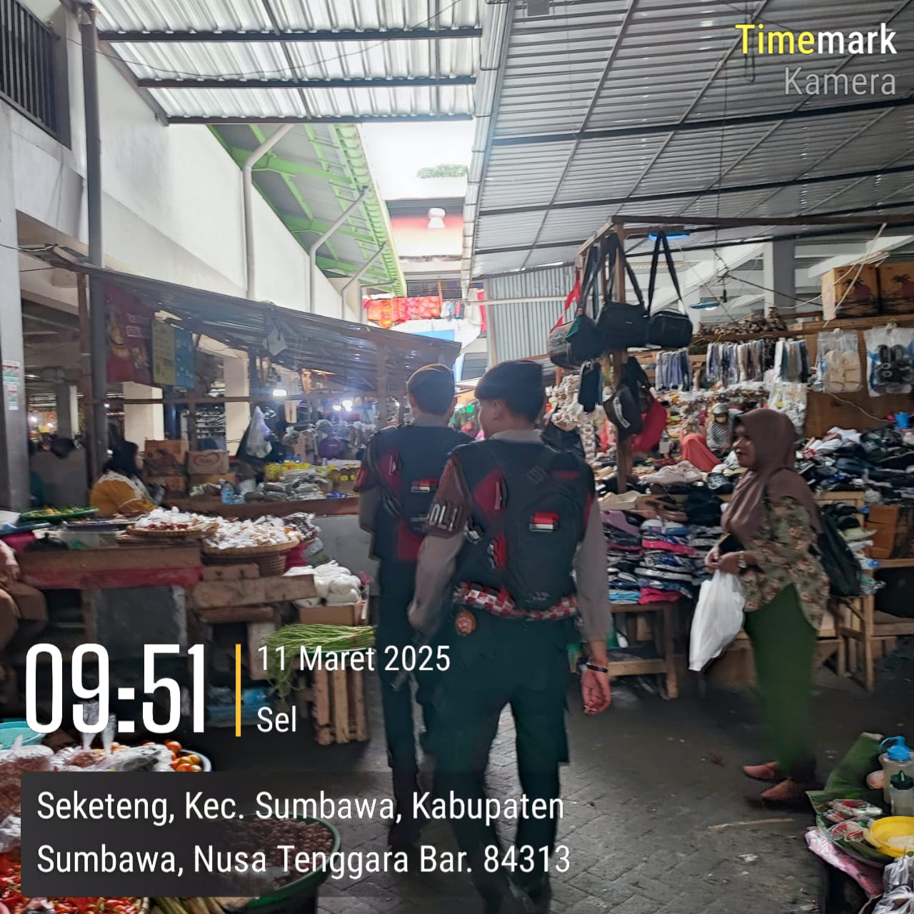 Sumbawa Besar –NTB, Dalam rangka menjaga keamanan dan ketertiban selama Bulan Suci Ramadhan, personel Unit Patroli Samapta Polres Sumbawa melaksanakan patroli di Pasar Seketeng, Sumbawa, Selasa (11/03/25) pagi.