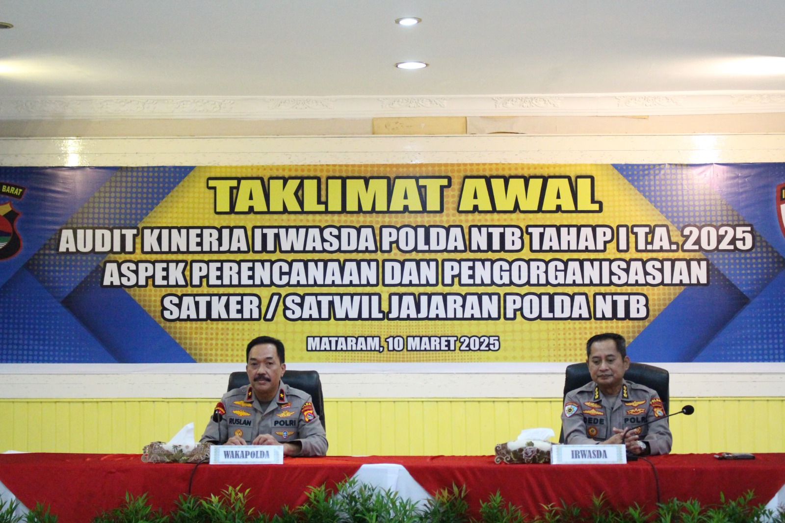 Kegiatan ini dibuka langsung Wakapolda NTB dan turut dihadiri Irwasda Polda NTB, Pejabat Utama (PJU) Polda NTB, para Kapolres/ta jajaran Polda NTB, serta Kasubbag Renmin Satker Polda NTB. Acara berlangsung di Ruang Presisi Polda NTB, Senin (10/3/2025) pukul 09.00 WITA hingga selesai.