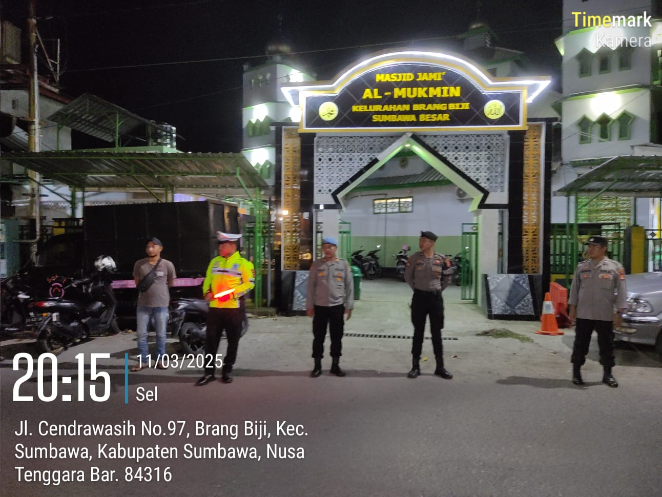 Sumbawa Besar –NTB, Dalam rangka memastikan keamanan dan kenyamanan masyarakat selama menjalankan ibadah di bulan suci Ramadhan, personel Polres Sumbawa melaksanakan kegiatan pengamanan sholat taraweh di sejumlah masjid yang berada di wilayah hukumnya, Selasa (11/03/25).