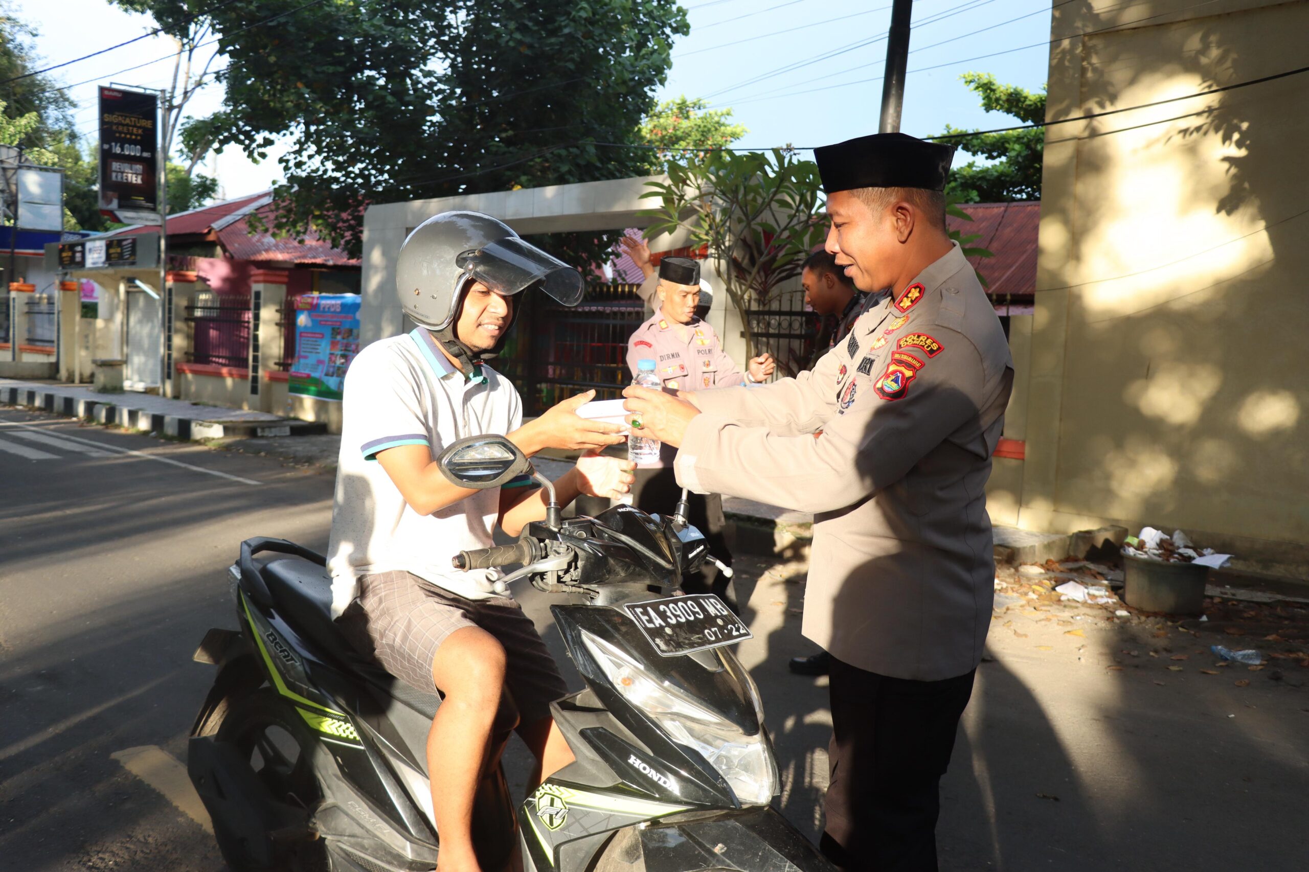 Tak hanya membagikan takjil, para anggota kepolisian juga menyampaikan pesan-pesan keamanan, mengajak masyarakat untuk tetap menjaga ketertiban dan menghindari hal-hal yang dapat mengganggu ibadah di bulan suci ini.
