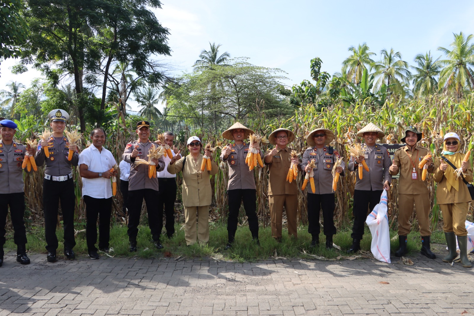 Lombok Utara – Kepolisian Resor Lombok Utara bersama dengan Dinas Pertanian Kabupaten Lombok Utara melaksanakan pemanenan jagung di lahan perkebunan milik Polres Lombok Utara, Senin (17/3).