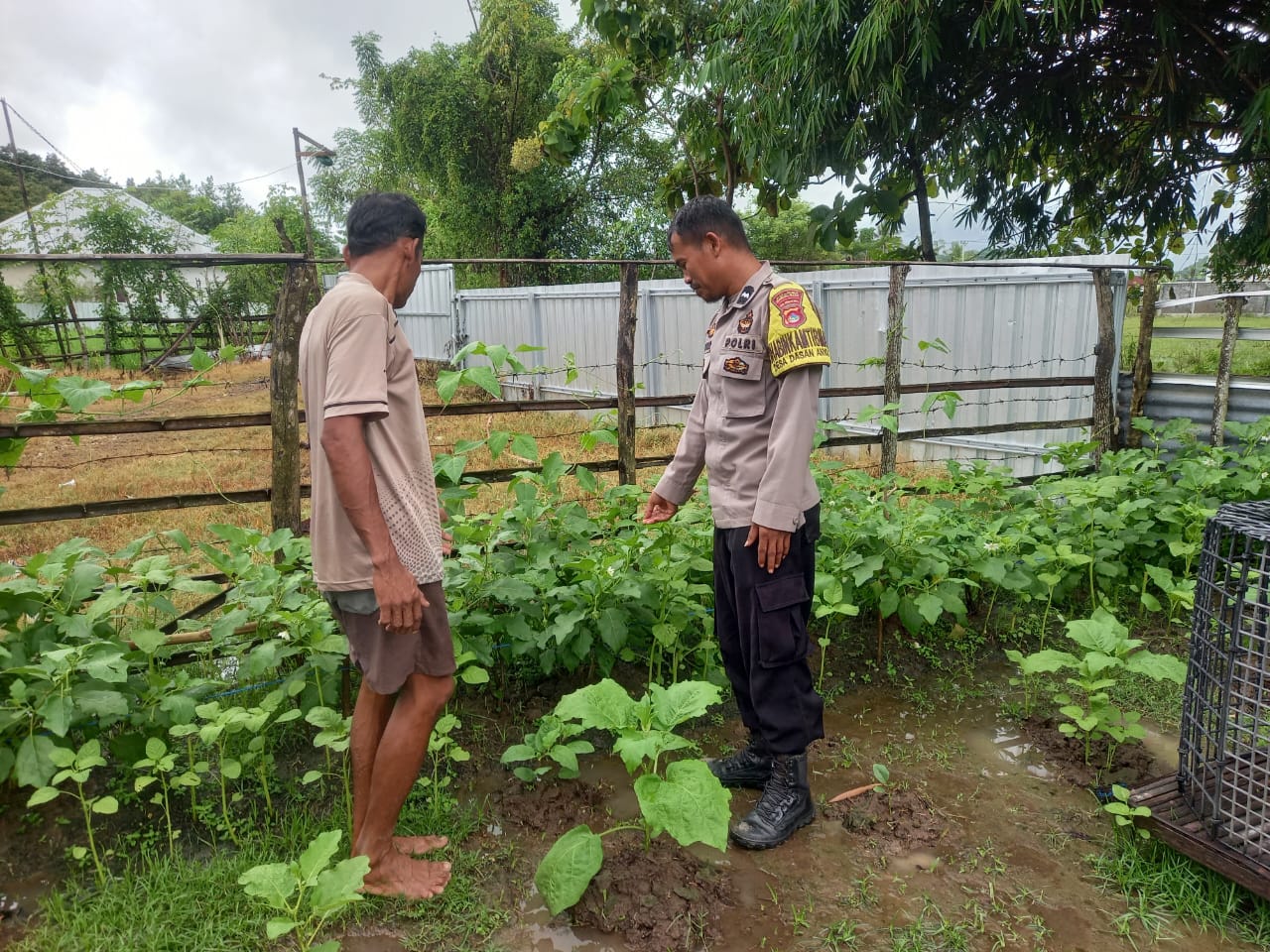 Dalam kegiatan tersebut, Aipda Sugianto memantau perkembangan tanaman sayur mayur yang meliputi terong, cabai, tomat, dan ubi. Tanaman tersebut dikelola dengan baik oleh Bapak Jaya, yang turut berperan penting dalam mendukung ketahanan pangan di wilayah setempat.
