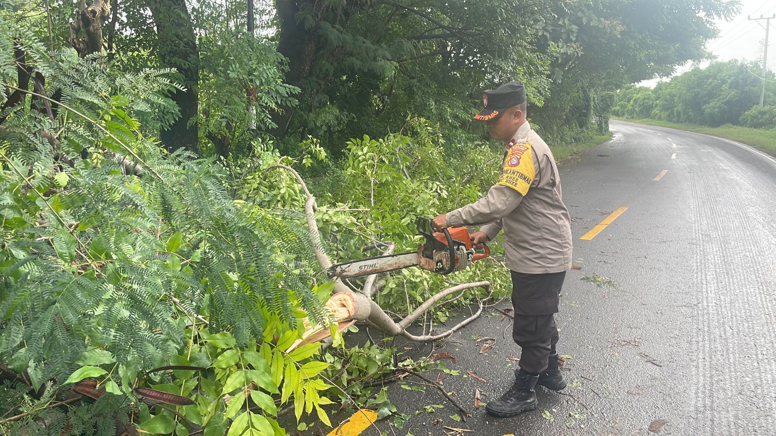 “Beruntung saat kejadian tidak ada kendaraan yang melintas di lokasi kejadian, sehingga tidak ada korban jiwa. Meskipun demikian, pohon yang tumbang menyebabkan arus lalu lintas sempat terhambat, mengganggu perjalanan warga yang hendak melintas.” Terang Kapolsek.