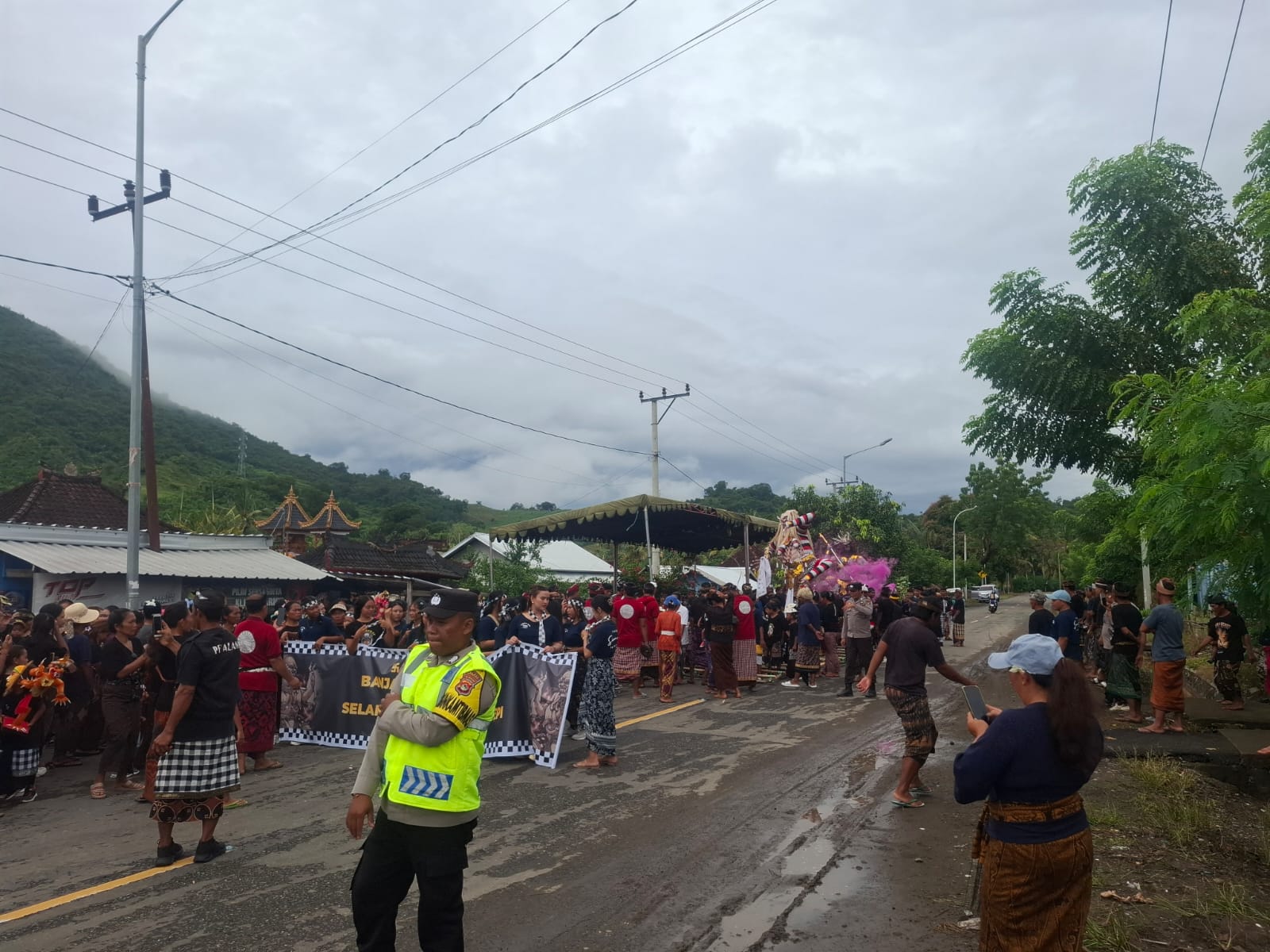 “Selanjutnya, setelah melaksanakan apel persiapan barulah memberikan pengamanan kegiatan Pawai Ogoh-ogoh dengan rangkaian kegiatan persiapan, plas pas (pembersihan) Ogoh-ogoh, arak-arakan Ogoh-ogoh dengan rute start dari depan rumah Ketua Banjar Yadnya Sari-Jembatan Samarekat-putar balik menuju ujung Dusun-finish lokasi start,” terangnya.
