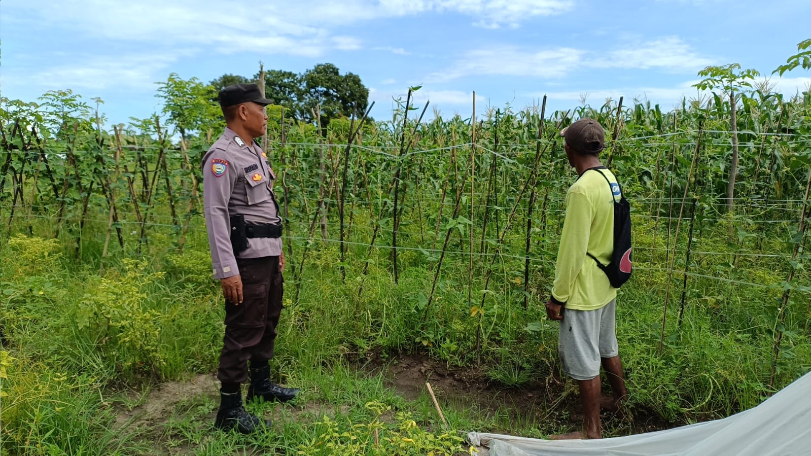 Sumbawa Besar–NTB, Dalam upaya mendukung ketahanan pangan nasional, Bhabinkamtibmas Polsek Buer, Bripka Heriyanto, melaksanakan kegiatan sambang ke kebun milik warga binaannya di Desa Tarusa, Sabtu (05/04/25).
