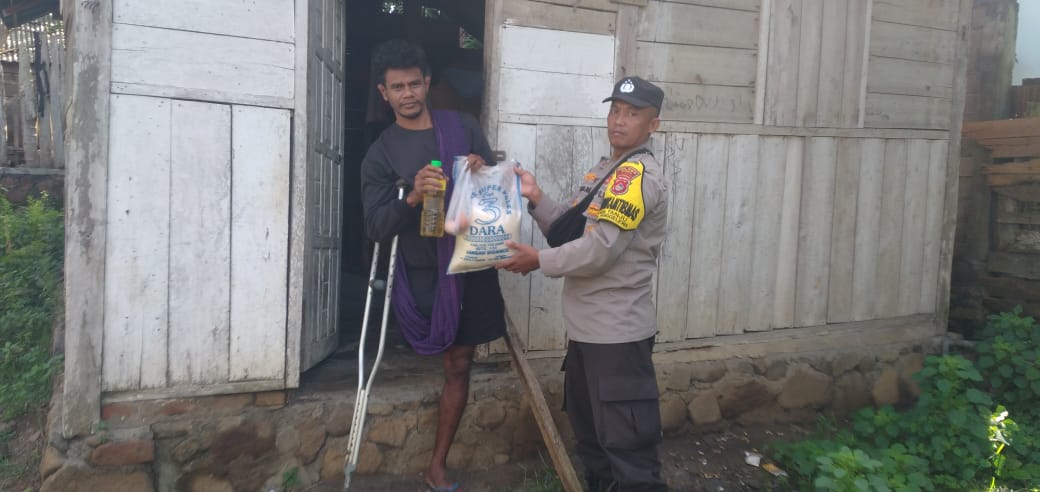 Dalam kunjungan yang dilakukan pada Sabtu pagi, sekitar pukul 08.30 WITA, AIPDA Arham tidak hanya melaksanakan sambang dan silaturahmi, namun juga menyerahkan sarana kontak berupa sembako kepada Fijaikum, seorang warga yang kesehariannya hidup dalam keterbatasan fisik namun tetap menunjukkan semangat hidup luar biasa.