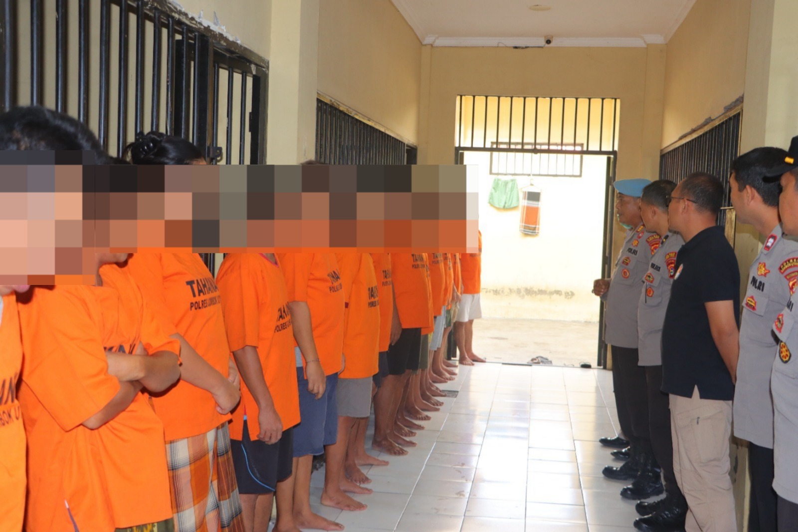 Sebanyak 15 orang tahanan menjalani pemeriksaan urin yang dilakukan oleh Seksi Dokes Polres Lombok Utara bersama dengan Seksi Propam dan Satuan Reserse Narkoba.