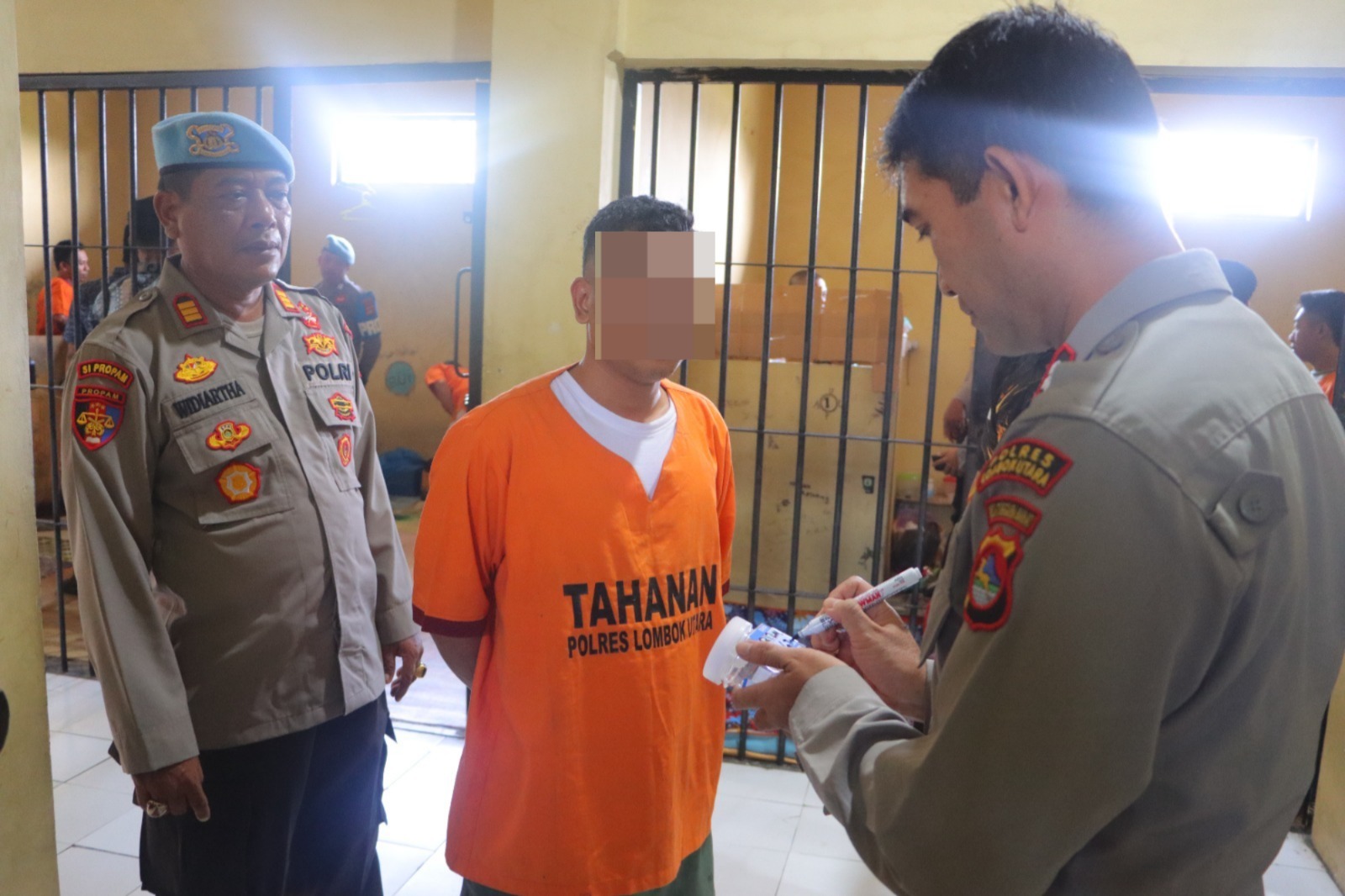 Lombok Utara – Guna mengantisipasi adanya penggunaan Narkoba di Rutan Polres Lombok Utara, Si Propam melakukan sidak yang di dampingi Kasat Tahti dan Si Dokes melakukan tes urine terhadap seluruh tahanan yang ada di Rutan Polres Lombok Utara. Jumat, 11/4/2025.