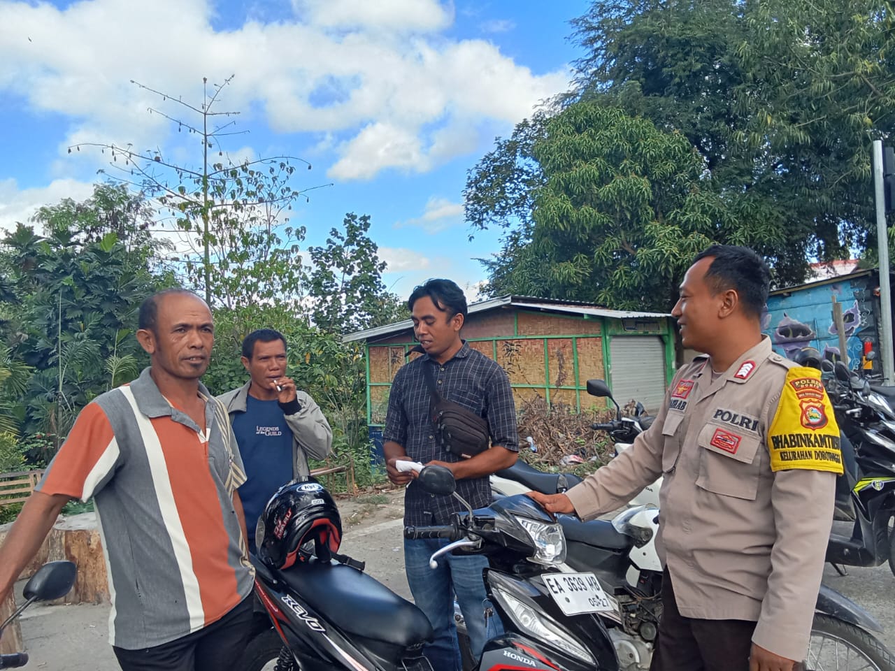 Dalam rangka mempererat hubungan dan membangun sinergi dengan masyarakat, Bhabinkamtibmas (BKTM) Kelurahan Dorotangga, Bripka Mazhab Dedi I, melaksanakan kegiatan sambang warga sekaligus halal bihalal dengan komunitas ojek pangkalan cabang Kodim, pada Sabtu (12/4/2025) pukul 10.00 WITA di Lingkungan Jado, Kelurahan Dorotangga, Kecamatan Dompu.