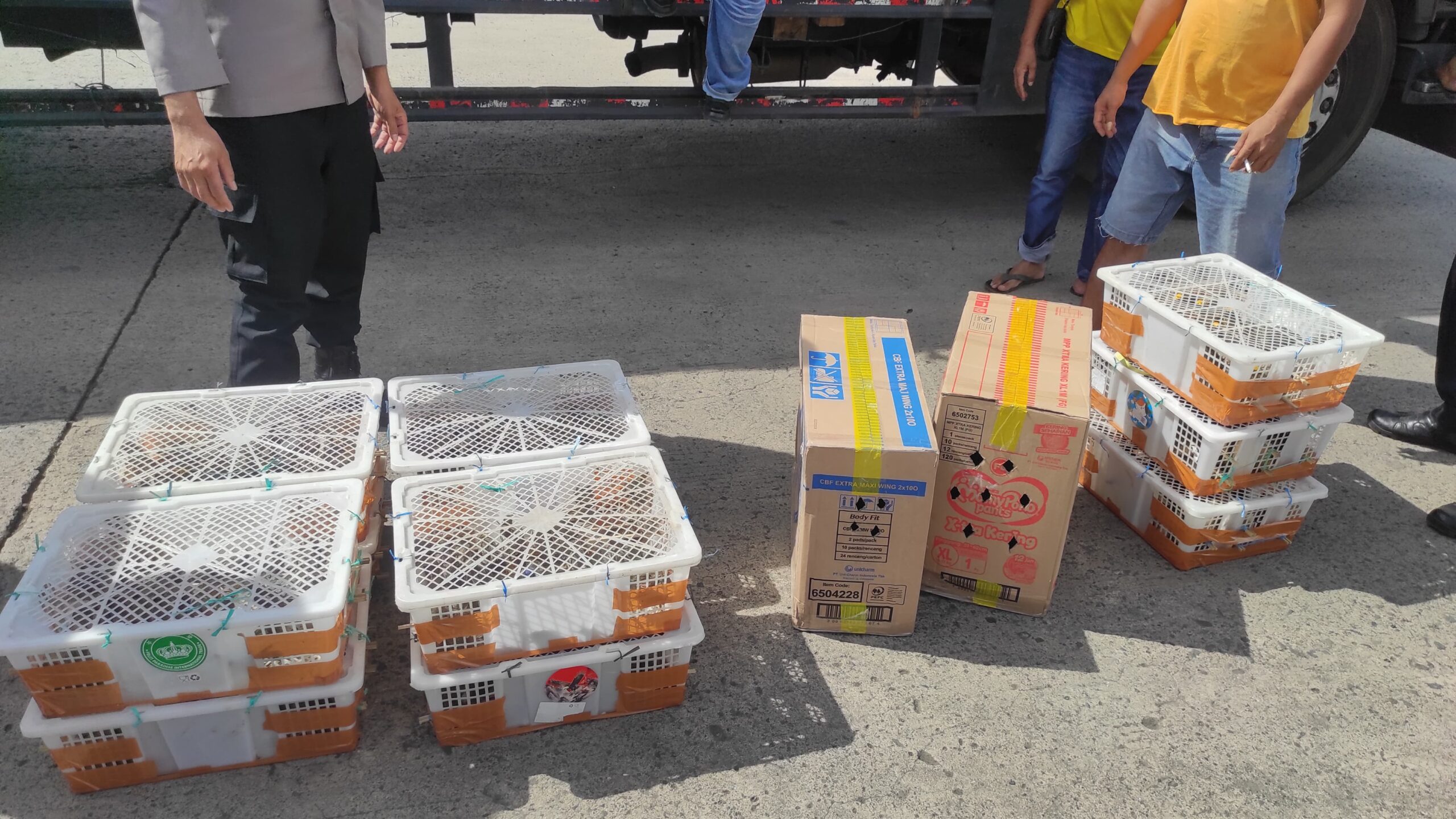 Hasilnya, petugas menemukan 11 box buah yang ternyata berisi berbagai jenis burung dan dua ekor ayam kampung.