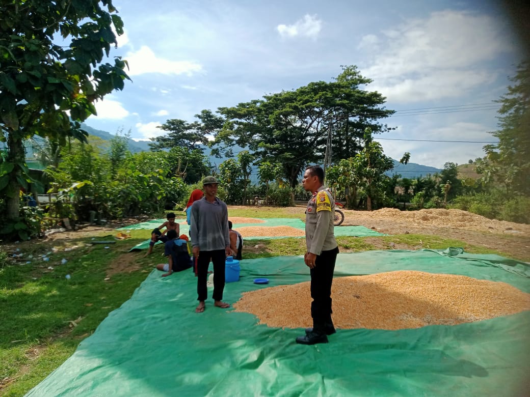 Dalam rangka mendukung Program Ketahanan Pangan Nasional Menuju Indonesia Emas 2045, Bhabinkamtibmas Desa Woko, Polsek Pajo, AIPDA Munawir melaksanakan pemantauan kegiatan panen jagung milik warga binaannya di Dusun Woko Atas, Desa Woko, Kecamatan Pajo, Kabupaten Dompu, Kamis (17/4/2025) pukul 11.00 WITA.