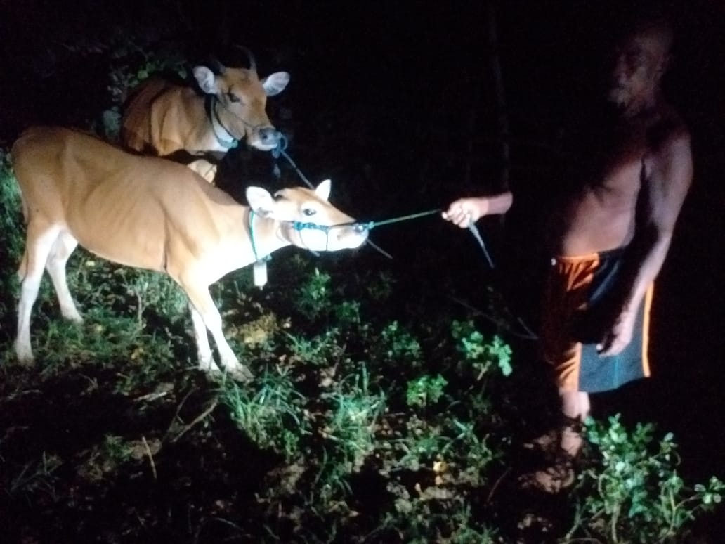 Dalam perjalanan, sapi tersebut sempat terlepas dari tangan pelaku, namun berhasil ditangkap kembali di sekitar Tempat Pemakaman Umum (TPU) Dusun Pandan Sari. Guna menghindari kecurigaan warga, terduga pelaku mengikat sementara sapi curian tersebut pada salah satu pohon pagar TPU sambil memantau situasi perkampungan.