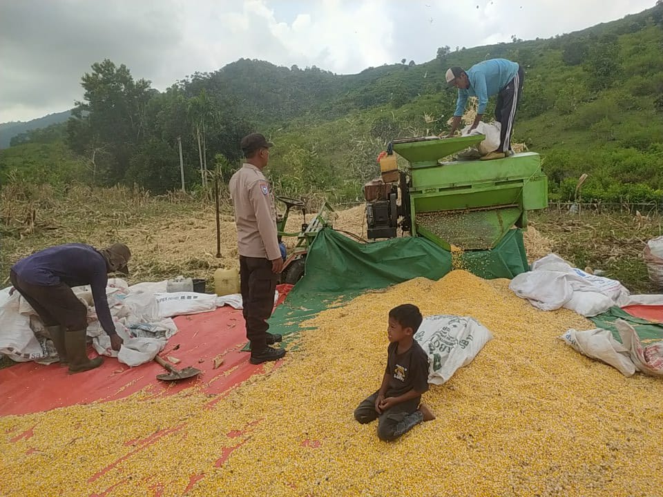 Dukung Ketahanan Pangan, Bhabinkamtibmas Desa Ranggo Pantau Penggilingan Jagung Petani