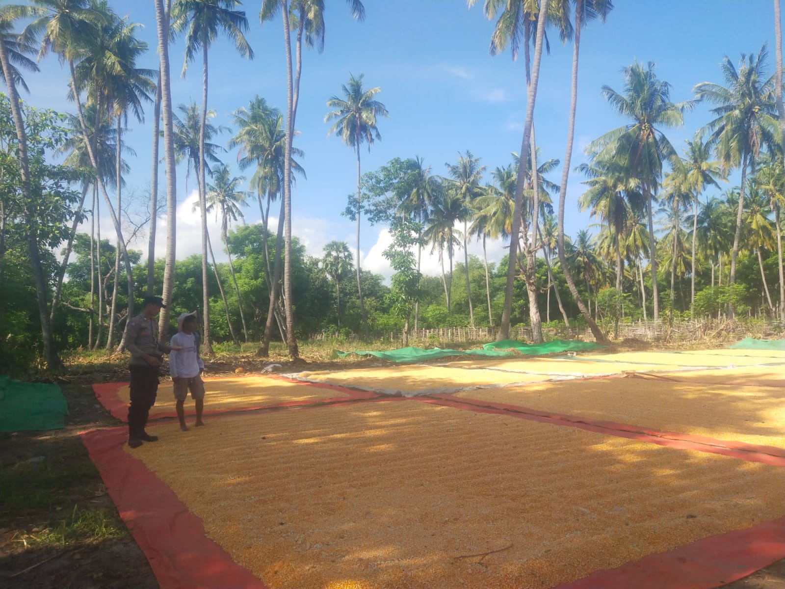 Bhabinkamtibmas Desa Lasi Polsek Kilo, BRIGADIR Irwan Alhamzani, melaksanakan pemantauan panen jagung milik Bapak Midum di Dusun Nanga Lasi, Kecamatan Kilo, Kabupaten Dompu, pada Selasa (22/4/2025) pagi.