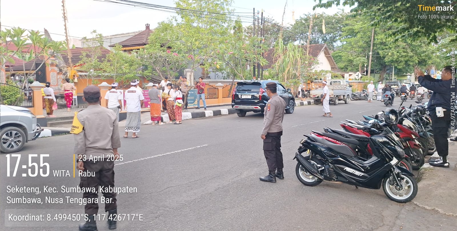 Sumbawa, NTB – Jajaran Polres Sumbawa menunjukkan sinergitas yang Solid dengan Pecalang (petugas keamanan adat Bali) dalam melaksanakan pengamanan dan pengaturan arus lalu lintas di sekitar area Pura Giri Natha Sumbawa pada perayaan Hari Raya Galungan, Rabu (23/04/25).
