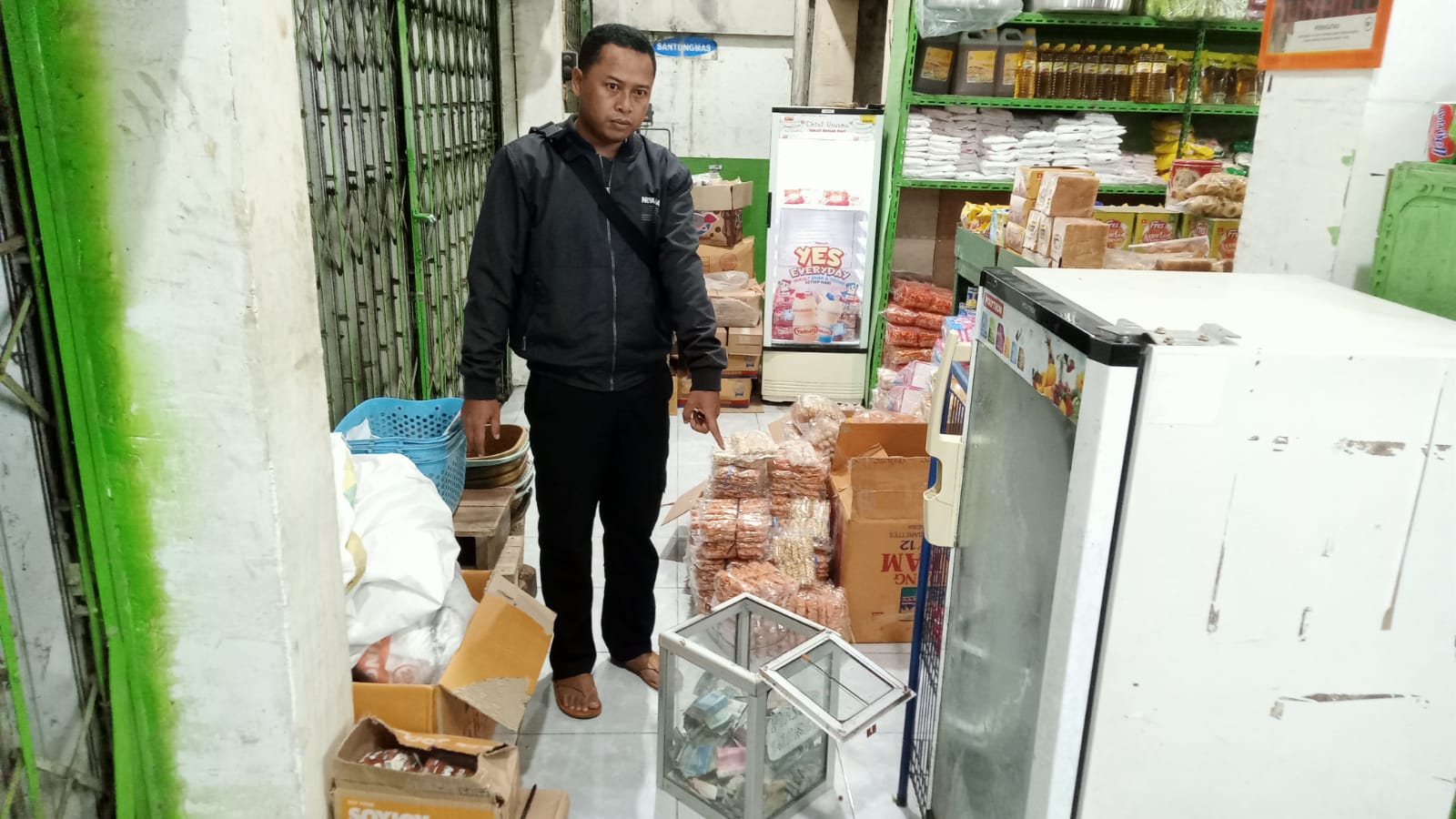Dan setibanya di sana korban masih monitor perbuatan terduga pelaku HH yang telah mengambil rokok yang ada di etalase tokonya serta membongkar kotak amal yang ada di toko milik korban.