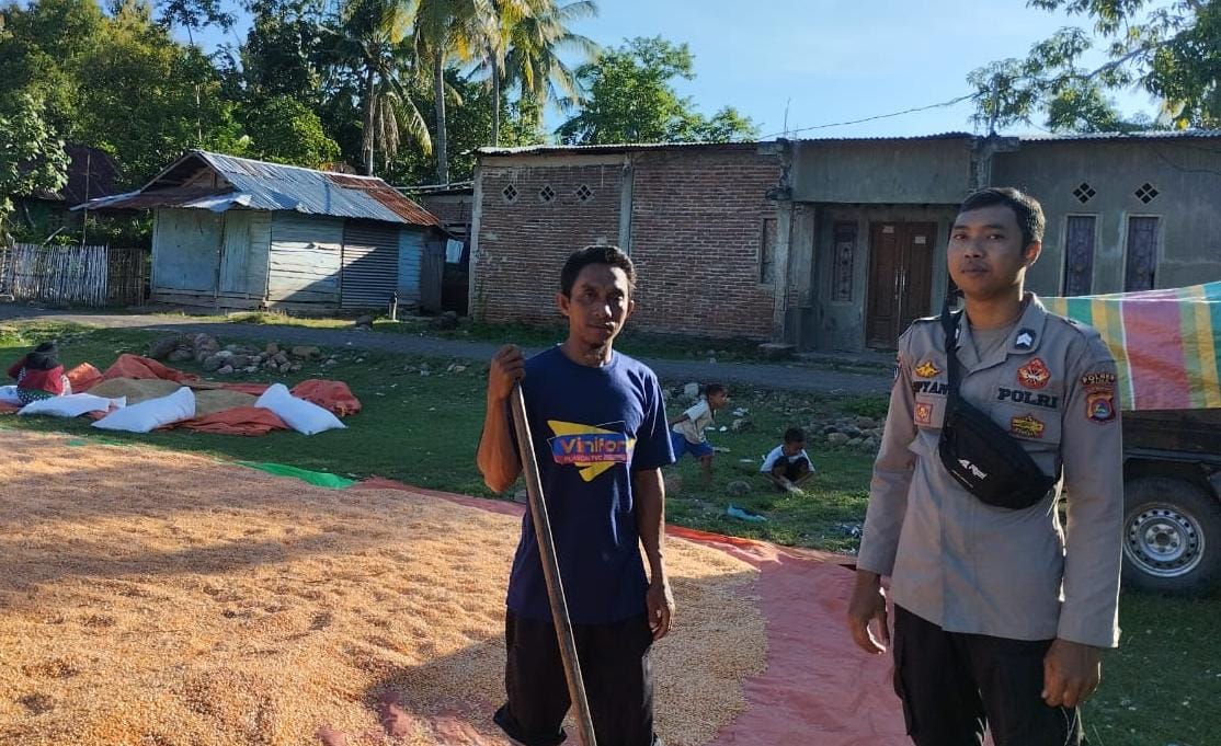 Pada Senin 28 Maret 2025 siang kemarin Briptu Ahmad Sopian Hadi Bhabinkamtibmas Polsek Monta melaksanakan sambang serta memantau proses penjemuran jagung warga di binaan Desa Tolouwi Kecamatan Monta Kabupaten Bima.