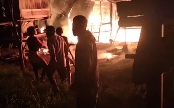 rumah panggung / rata dengan tanah 16 tiang milik M (L/37) terjadi pada Minggu 27 April 2025 sekira pukul 22.30. Wita.