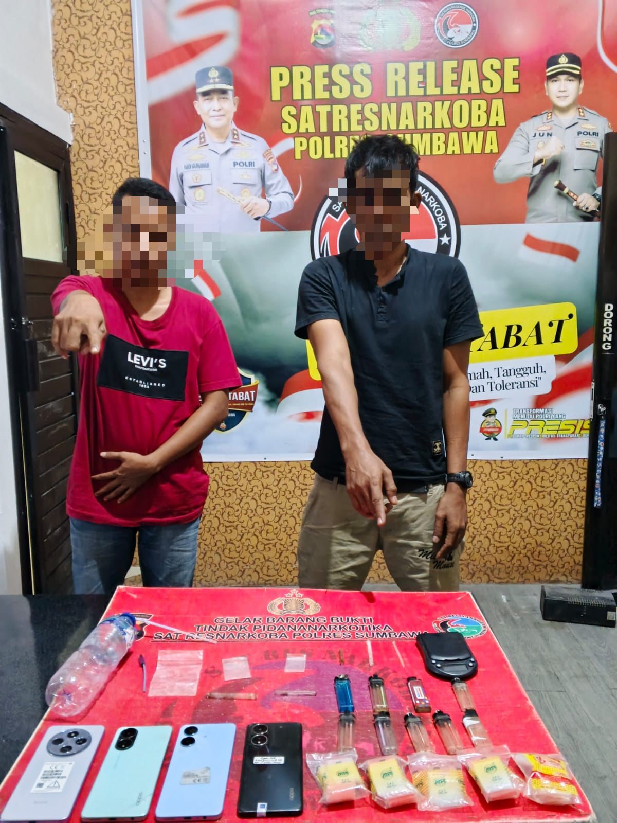 Kapolres Sumbawa AKBP Bagus Nyoman Gede Junaedi, S.H., S.I.K., M.A.P., melalui Kasat Narkoba AKP Tamrin, S. Sos., mengungkapkan bahwa penangkapan ini berasal informasi warga sekitar terkait adanya aktivitas mencurigakan dari sebuah rumah yang terduga pengguna narkotika.
