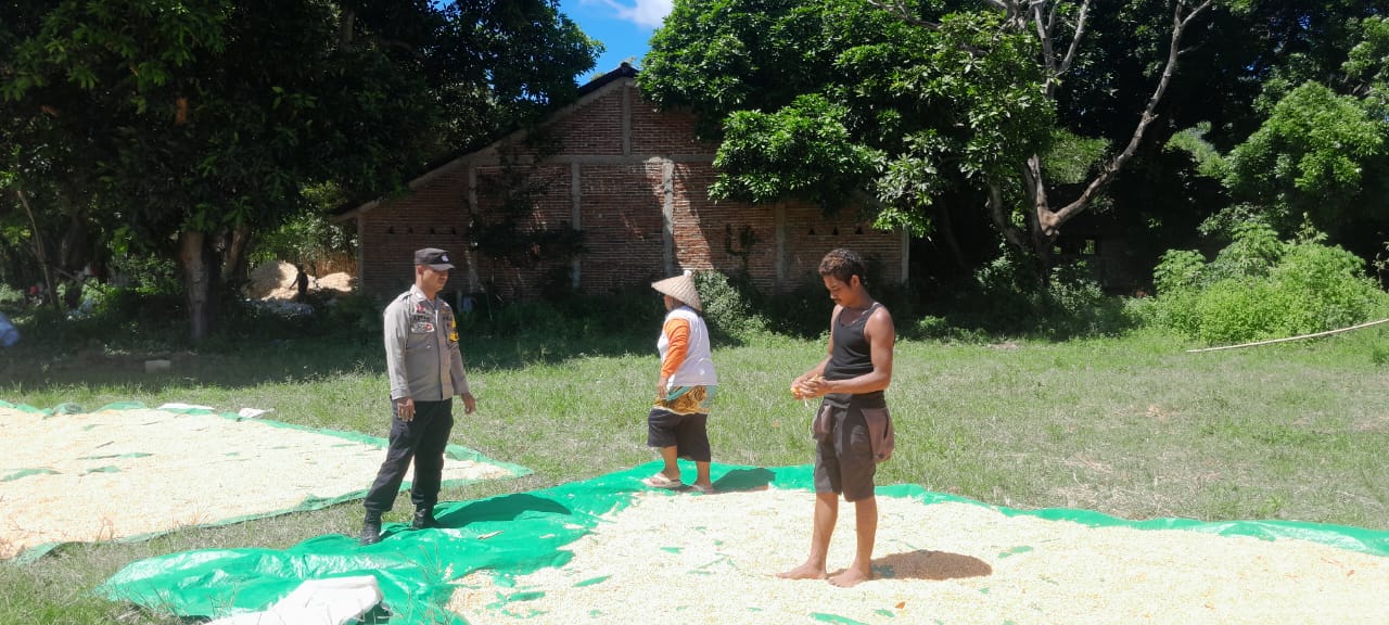 Dalam mendukung Program Ketahanan Pangan Nasional Menuju Indonesia Emas 2024, Bhabinkamtibmas Desa Daha, Polsek Hu’u, BRIPKA Adi Setiadi melaksanakan giat pemantauan terhadap warga binaan yang sedang melakukan penjemuran jagung di Dusun Tolondaja, Desa Daha, Kecamatan Hu’u, Kabupaten Dompu.