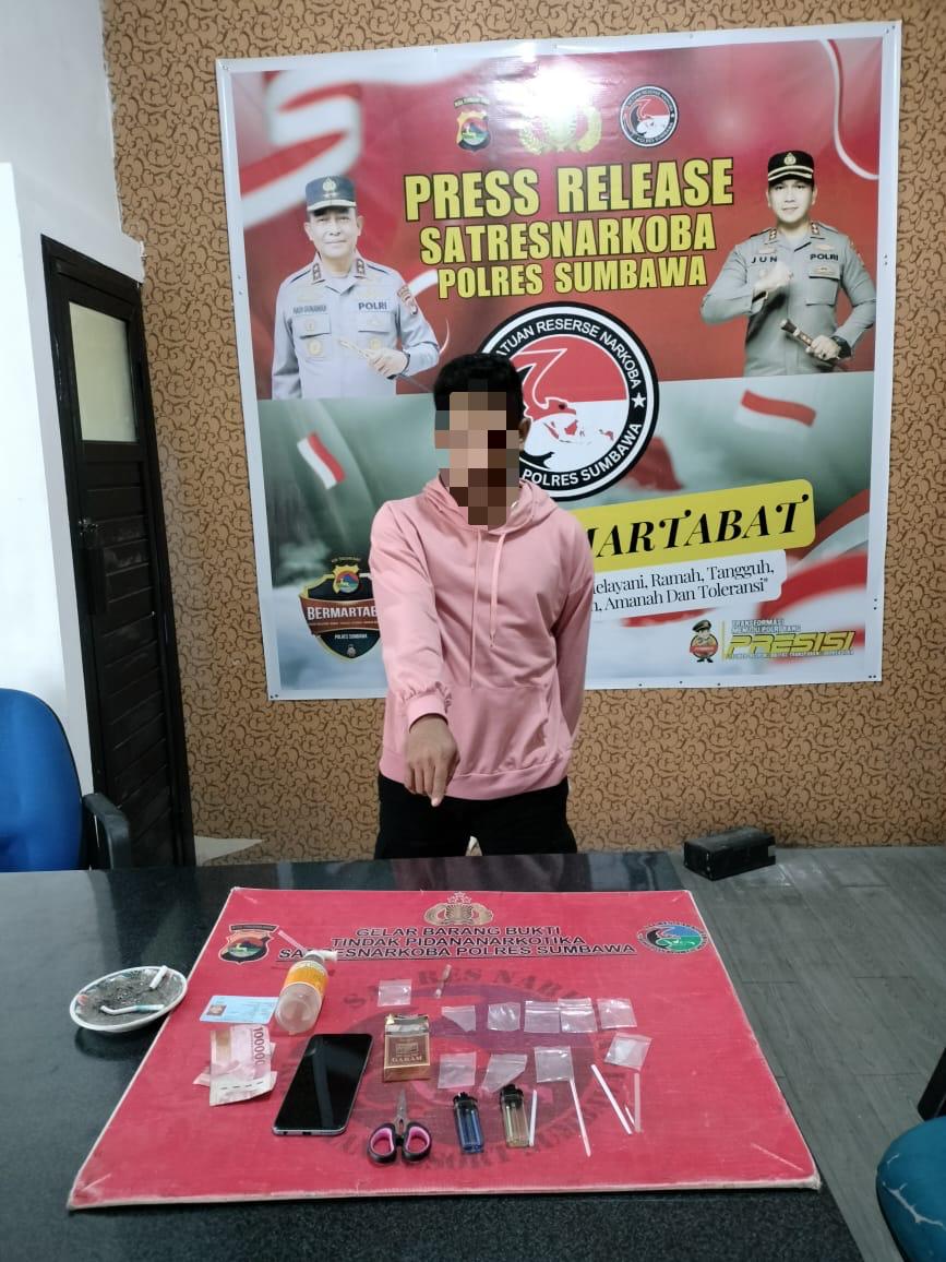 Kapolres Sumbawa AKBP Bagus Nyoman Gede Junaedi, S.H., S.I.K., M.A.P., melalui Kasat Narkoba AKP Tamrin, S.Sos., membenarkan penangkapan tersebut. “Petugas mendapatkan infomasi ini dari perangkat desa yang mencurigai seorang pria yang diduga pengedar dan pengguna narkotika jenis sabu di Kec. Utan, Kab. Sumbawa.” ucap Kasat.