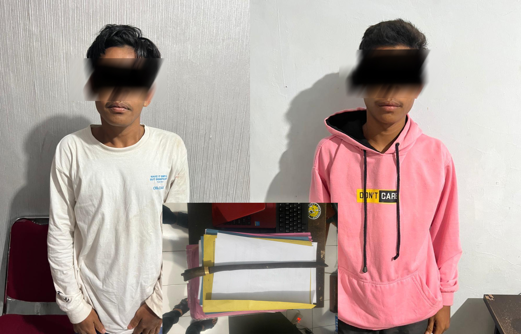 Selain kedua pelaku, barang bukti berupa sebilah parang sepanjang 40 cm juga berhasil diamankan dari lokasi kejadian.