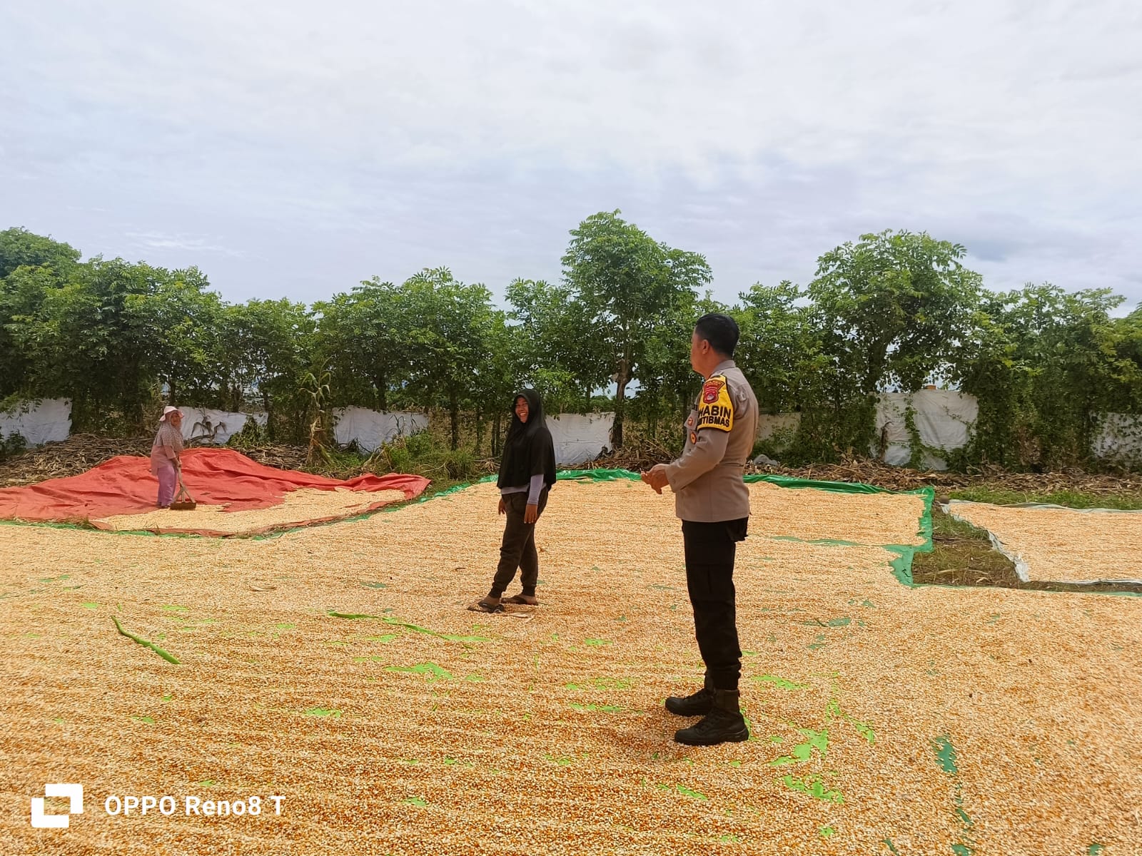 Bhabinkamtibmas Desa Hu’u, Polsek Hu’u, AIPDA M. Husnin, melaksanakan pemantauan langsung terhadap aktivitas warga binaannya yang tengah memasukkan jagung hasil panen ke dalam karung, di Dusun Cangga, Desa Hu’u, Kecamatan Hu’u, Kabupaten Dompu, Sabtu (3/5/2025) pukul 10.15 Wita.