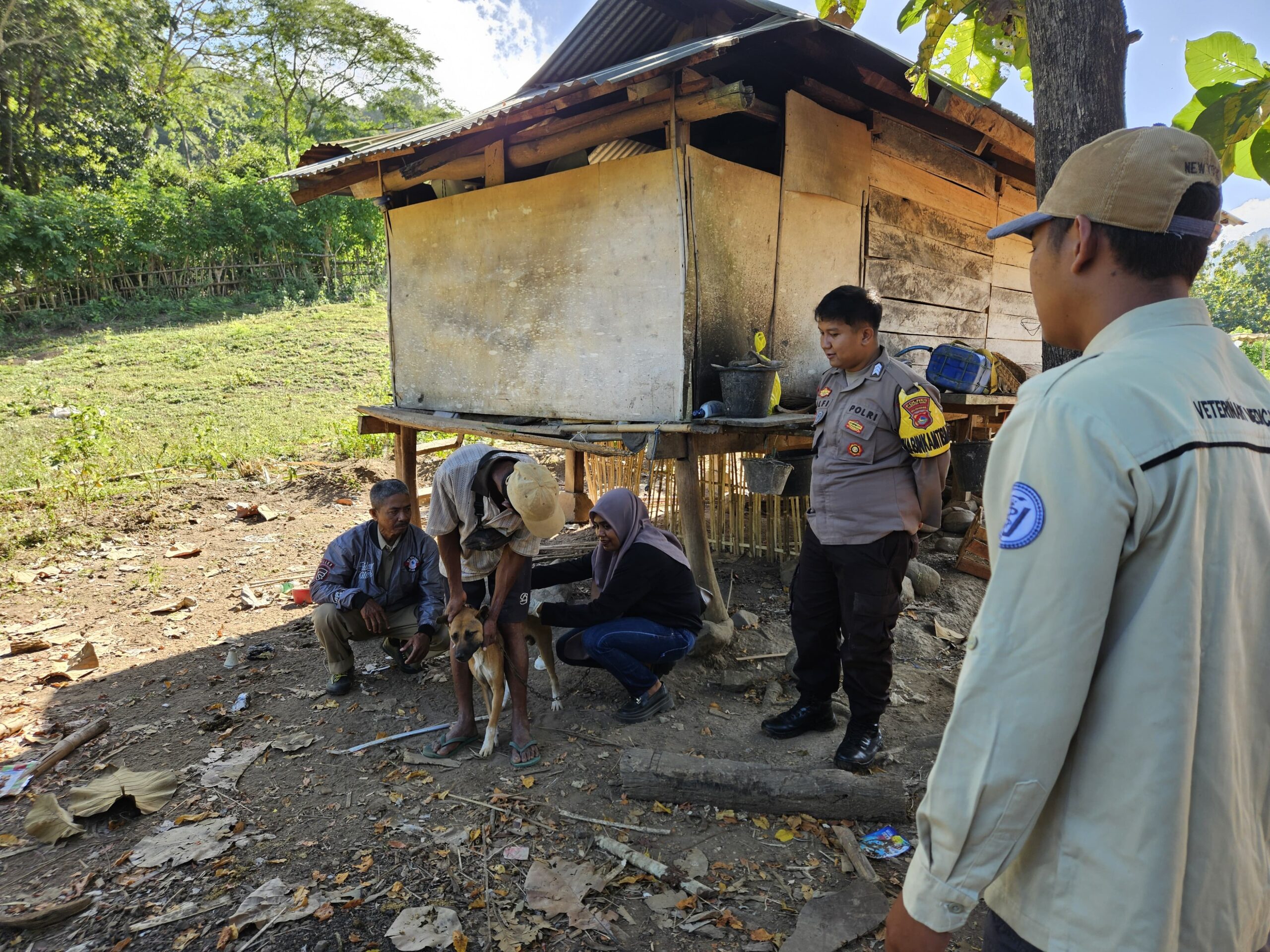 Sumbawa Barat, NTB – Dalam upaya menjaga kesehatan hewan peliharaan, Bhabinkamtibmas Desa Sekongkang Atas, Brigadir Andrea Alfi Pangestu, melaksanakan pendampingan kegiatan vaksinasi rabies yang dilakukan oleh tim Kesehatan Hewan (Keswan) Kecamatan Sekongkang, pada Senin pagi (05/05/2025) pukul 08.10 WITA, di Desa Sekongkang Atas, Kecamatan Sekongkang, Kabupaten Sumbawa Barat.
