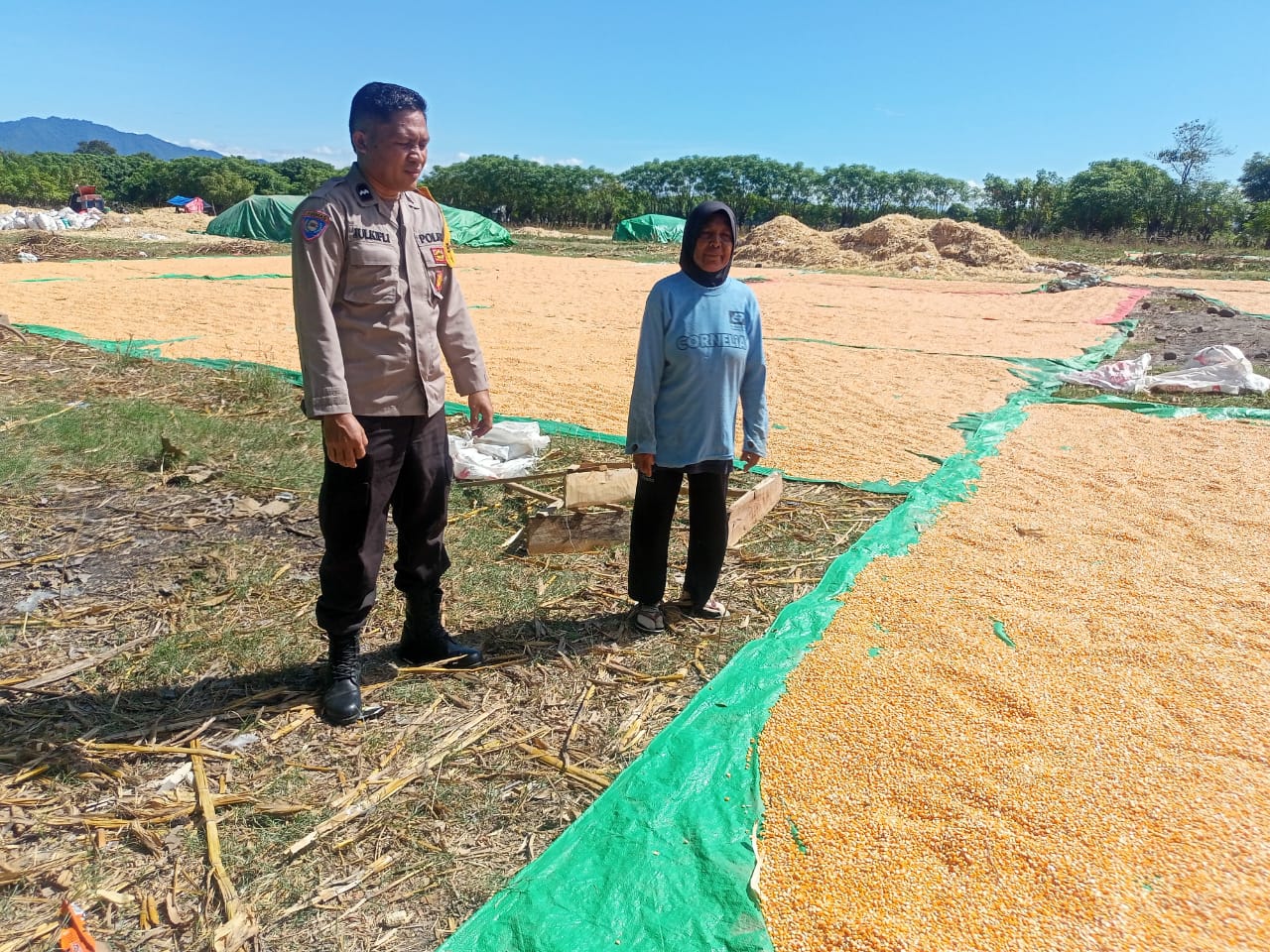 Dalam rangka mendukung program pemerintah menuju Indonesia Emas 2024, Bhabinkamtibmas Desa Marada, Kecamatan Hu’u, Kabupaten Dompu, Aipda Julkifli, melaksanakan pemantauan terhadap aktivitas warga binaan yang sedang menjemur hasil panen jagung di wilayah binaannya.
