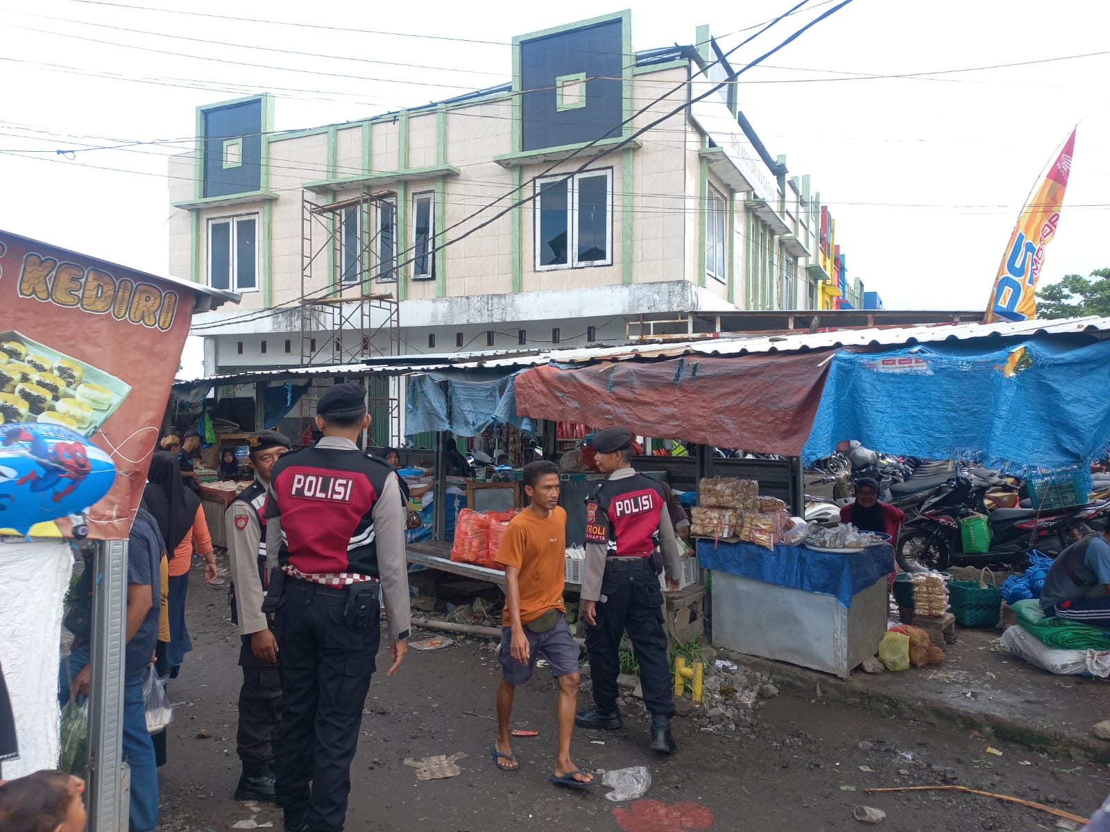 Tim patroli menyasar Pasar Kediri yang terletak di Desa Kediri Selatan, Kecamatan Kediri, Kabupaten Lombok Barat.