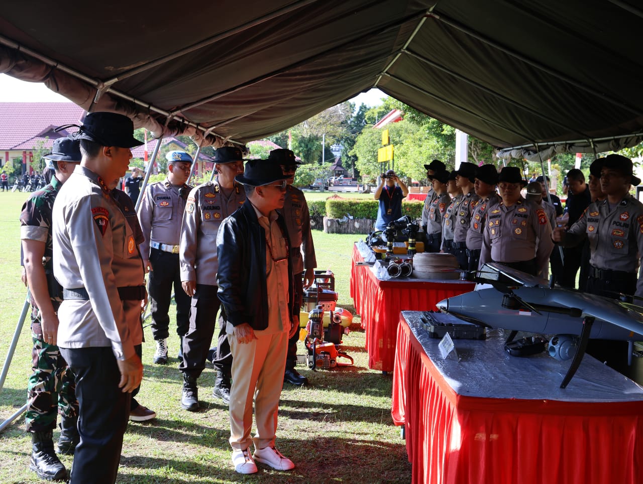 Usai pelaksanaan apel, Kapolda bersama Gubernur melakukan pengecekan langsung terhadap sarana dan prasarana yang disiapkan untuk mendukung penanganan Karhutla.