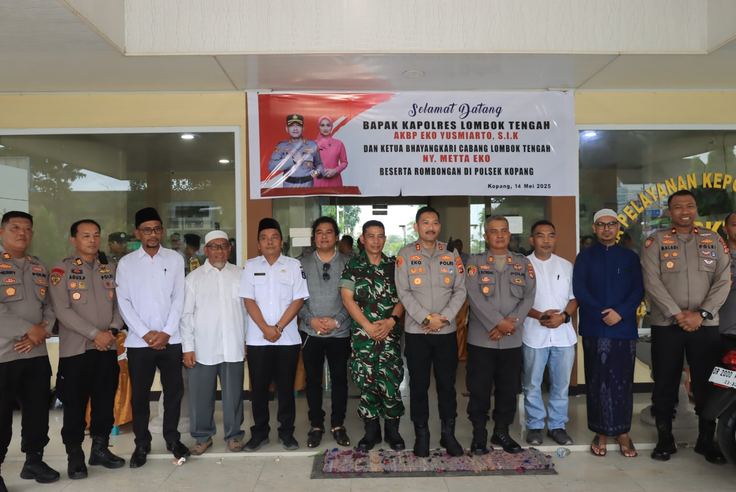 Lombok Tengah, NTB – Kapolres Lombok Tengah AKBP Eko Yusmiarto, S.I.K., bersama Ketua Bhayangkari Cabang Lombok Tengah dan Pejabat Utama (PJU) melaksanakan kunjungan kerja ke Polsek Kopang, Rabu (14/5).