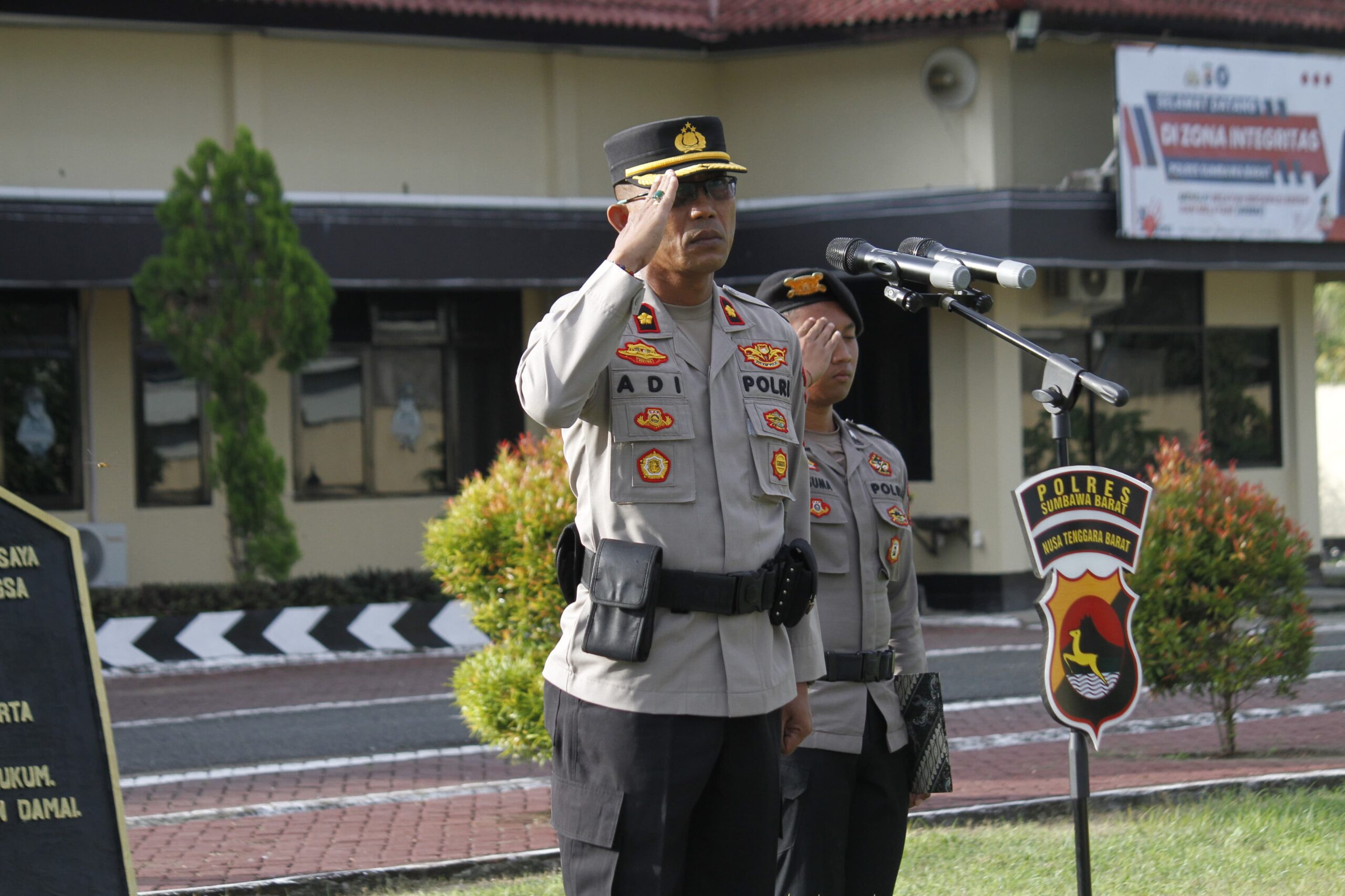 Wakapolres Sumbawa Barat, Kompol I Nyoman Adi Kurniawan, S.H., bertindak sebagai Inspektur Upacara. Sementara itu, AKP Zainal Abidin, S.H., selaku Kasi Humas, bertugas sebagai Perwira Upacara. Upacara ini dihadiri oleh seluruh Pejabat Utama Polres Sumbawa Barat, Wadanki 2 Yon B Pelopor Sat Brimob Polda NTB, satu peleton pasukan Brimob, satu peleton Samapta, satu peleton Sat Lantas, satu peleton staf Polres, gabungan anggota Polsek, serta satu peleton Reserse/Intelkam.