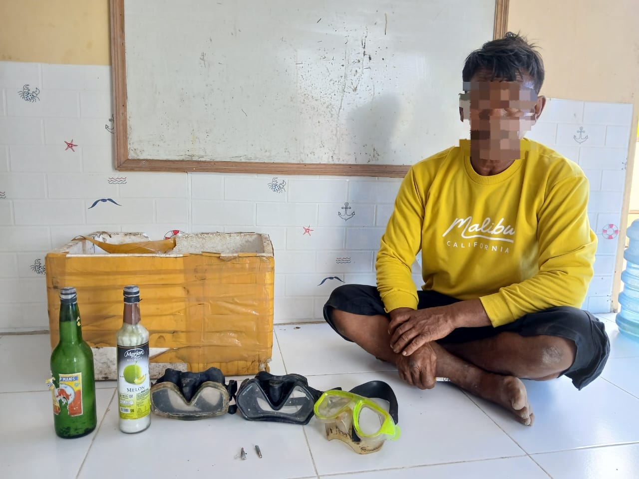 Terduga pelaku diamankan adanya informasi dari masyarakat yang menyebut terduga pelaku acap kali melakukan pemboman Ikan.