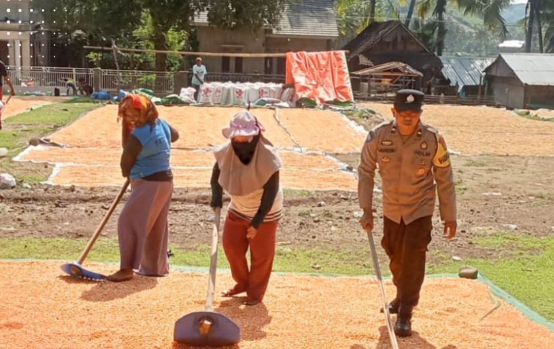 Kapolres Bima Kota AKBP Didik Putra Kuncoro, S.I.K., M.Si., melalui Kasi Humas Ipda Baiq Fitria Ningsih menyampaikan bahwa salah satu Bhabinkamtibmas Polres Bima Kota turut membantu proses pengeringan jagung milik warga binaannya yang tengah memasuki masa pascapanen.