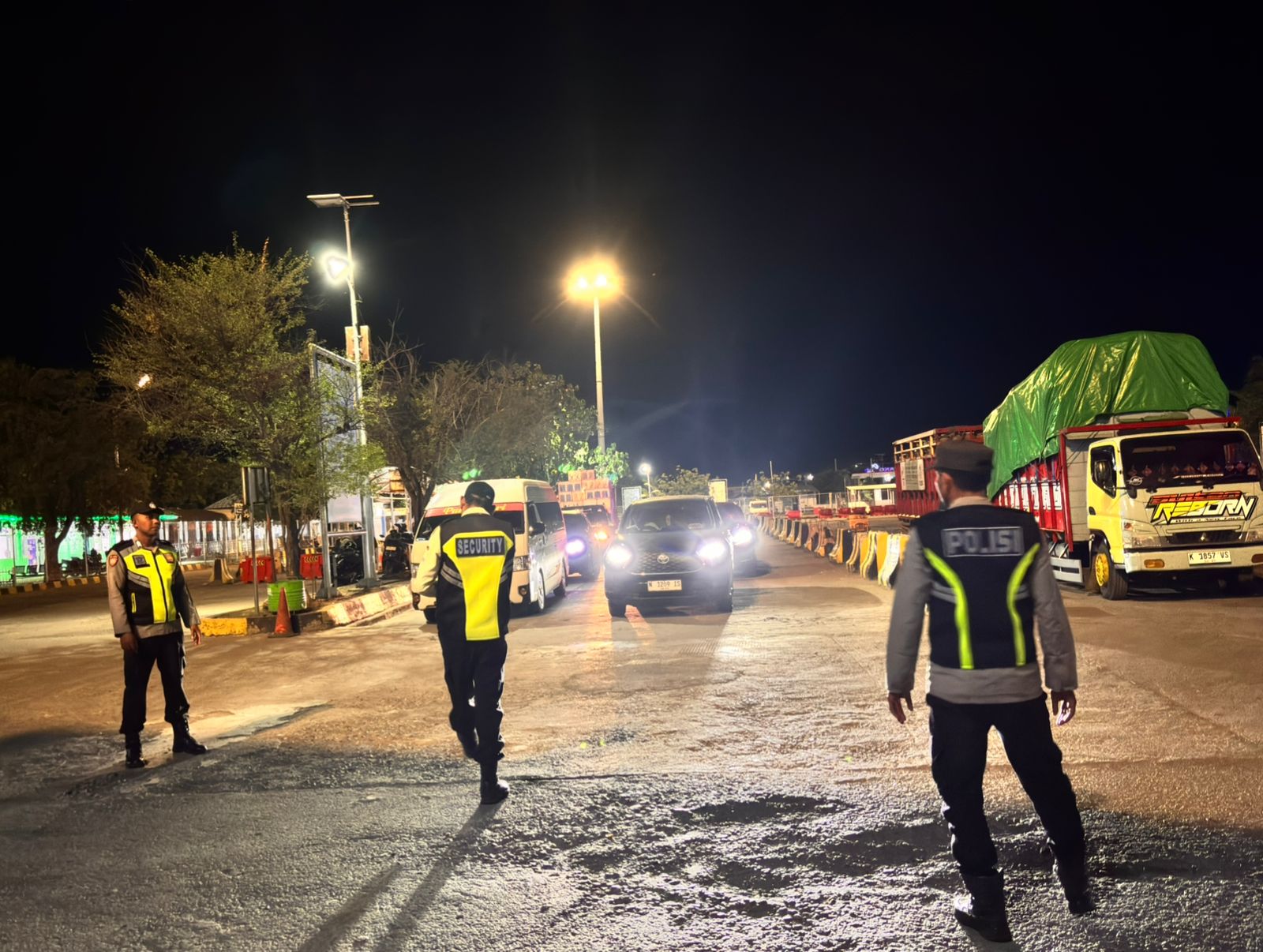 Kegiatan pengamanan dilakukan terhadap aktivitas penyeberangan kendaraan dan penumpang yang berlangsung di pelabuhan tersebut. Petugas memastikan setiap proses berjalan tertib, aman, dan sesuai prosedur, baik dari sisi keamanan maupun pelayanan kepada masyarakat.