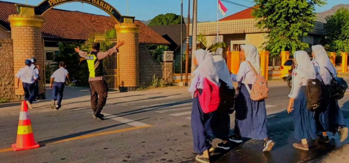 “Setiap pagi, banyak anak-anak kita yang harus menyeberang jalan utama menuju sekolah. Jalur ini cukup padat dengan kendaraan umum, termasuk angkutan menuju Taliwang. Maka dari itu, kami hadir untuk memberikan rasa aman dan membantu mereka menyeberang dengan selamat,” ujar AKP Siswoyo.
