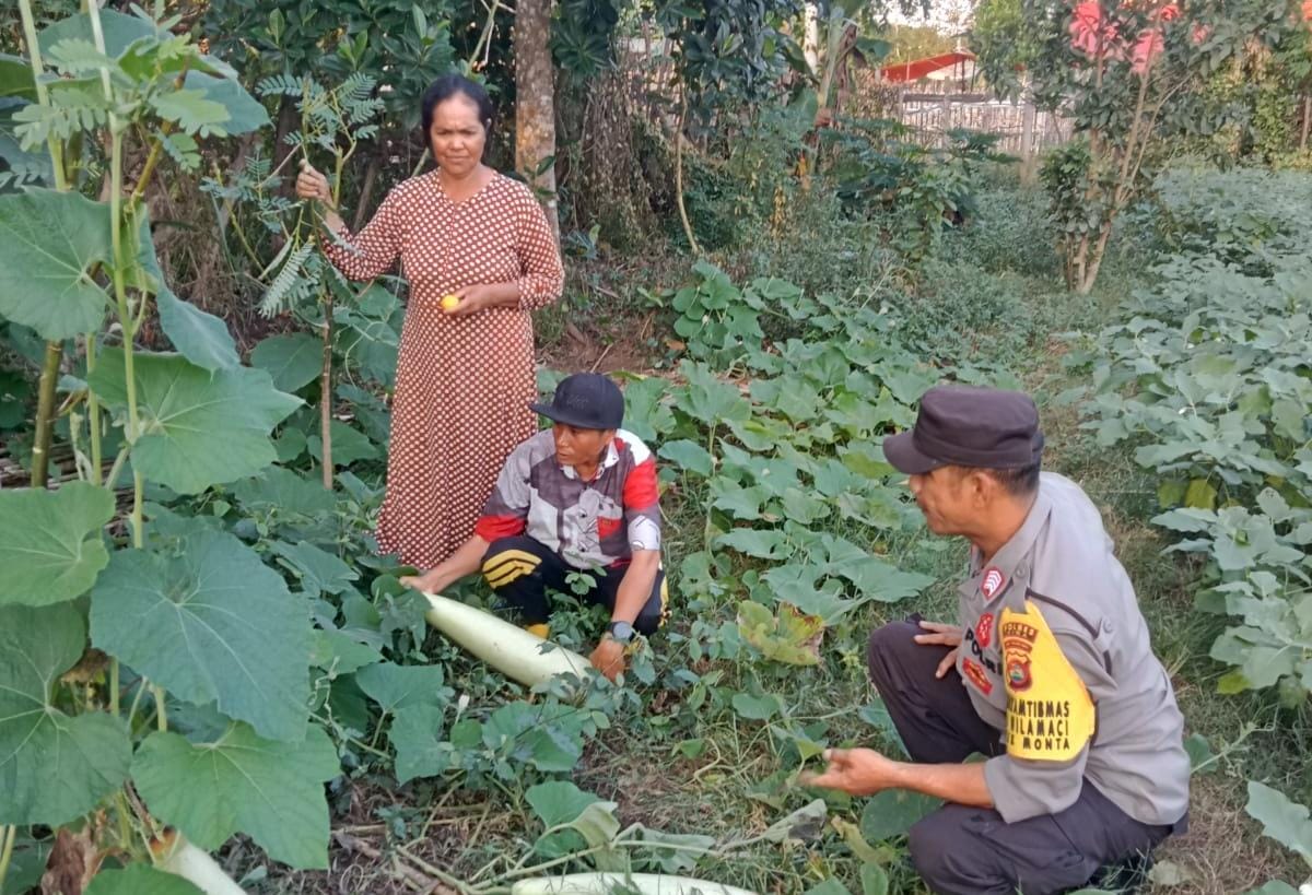 Wujud dukungan terhadap program ketahanan pangan nasional, Bhabinkamtibmas Polsek Monta Polres Bima Polda NTB Bripka Bambang Setiawan melakukan pengecekan terhadap lahan ketahanan pangan milik warga binaannya di Desa Wilamaci Kecamatan Monta Kabupaten Bima, Senin (16/6/25) Kemarin.