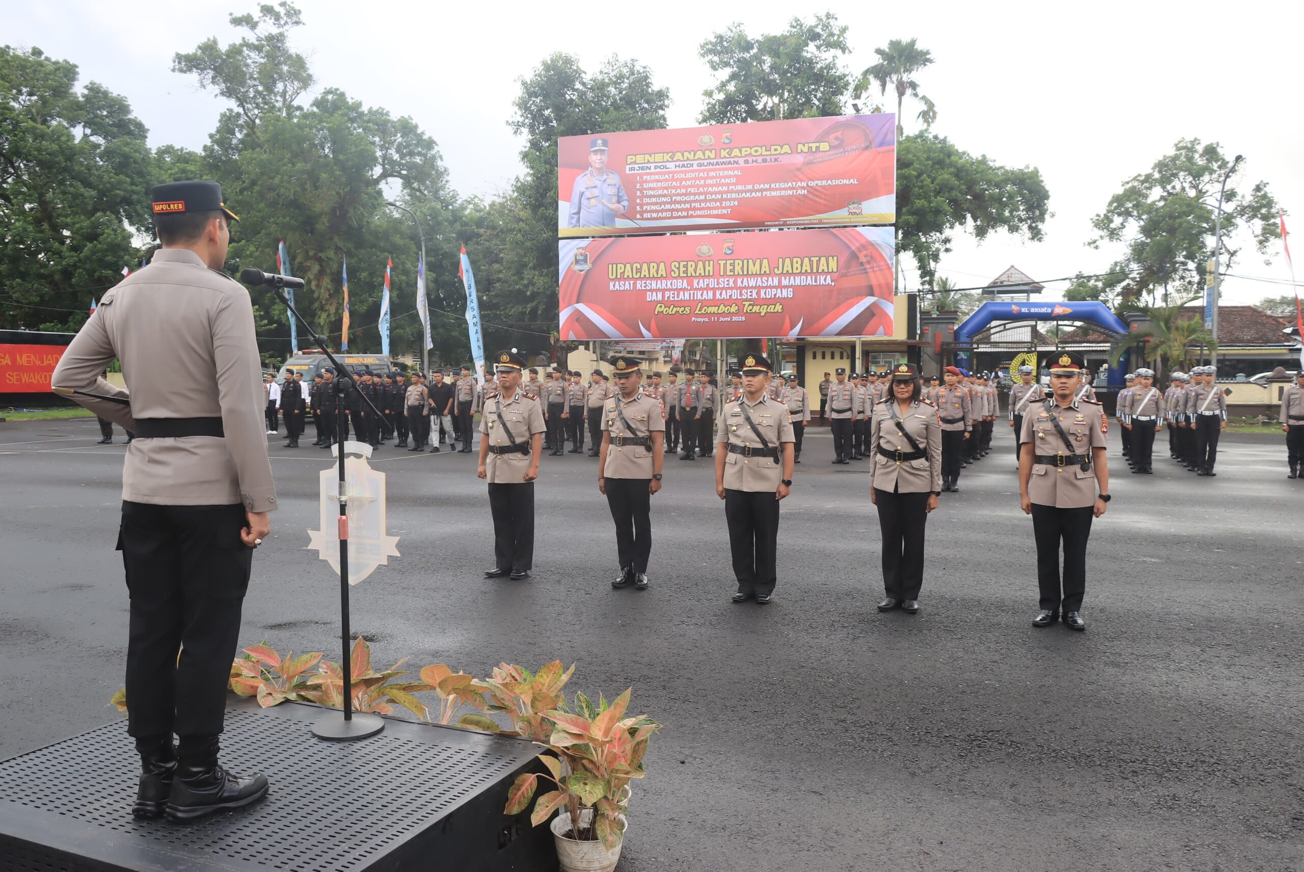 Lombok Tengah – Kepolisian Resor Lombok Tengah menggelar upacara serah terima jabatan (sertijab) Kasat Narkoba dan Kapolsek Kawasan Mandalika, serta pelantikan Kapolsek Kopang.