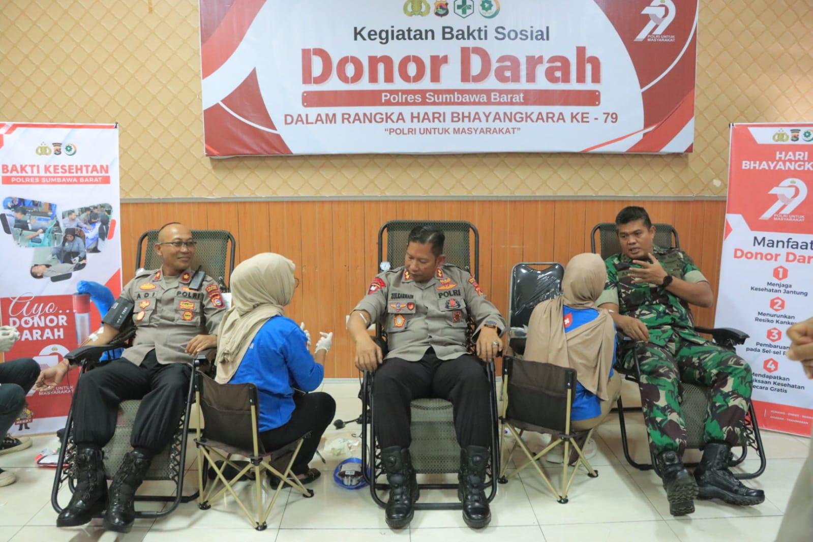 Sumbawa Barat, NTB — Dalam rangka memperingati Hari Bhayangkara ke-79, Polres Sumbawa Barat menggelar kegiatan sosial donor darah yang berlangsung di Aula Endra Dharma Laksana pada Kamis (19/6/2025) pukul 09.00 WITA. Kegiatan ini merupakan bagian dari rangkaian peringatan Hari Bhayangkara dan menjadi wujud kepedulian Polri terhadap kemanusiaan serta sektor kesehatan.