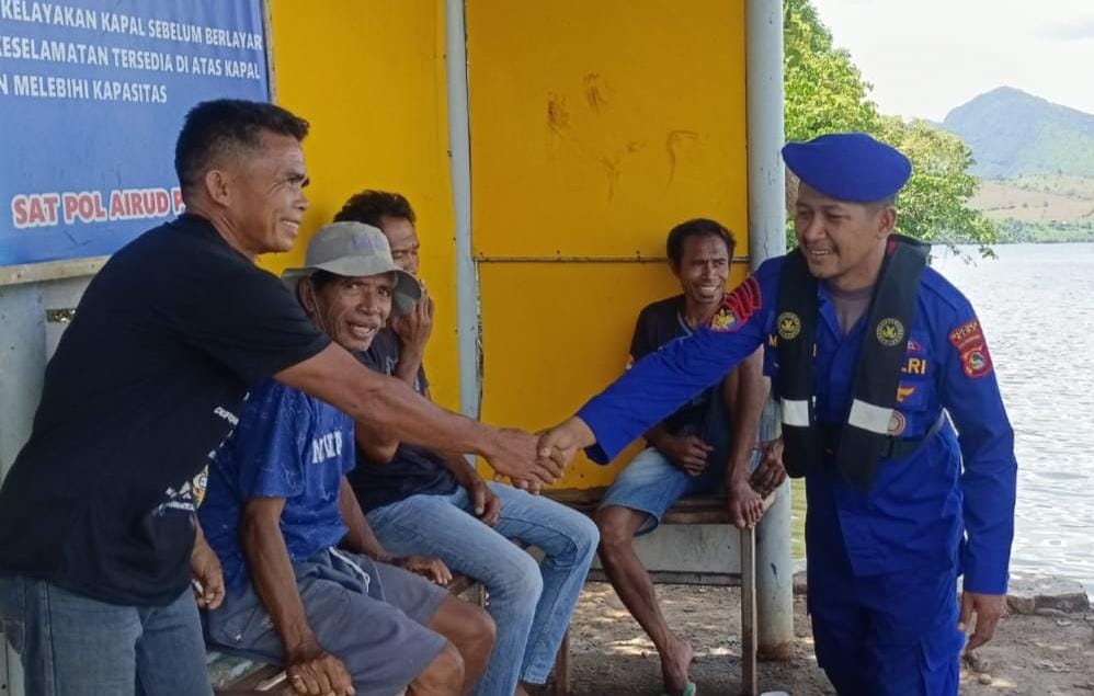 Personil Satpolairud Polres Bima Polda NTB bersilaturahmi bertajuk Jum,at Curhat dengan masyarakat pesisir dan nelayan di wilayah Dermaga tradisional Bajo Kecamatan Sanggar