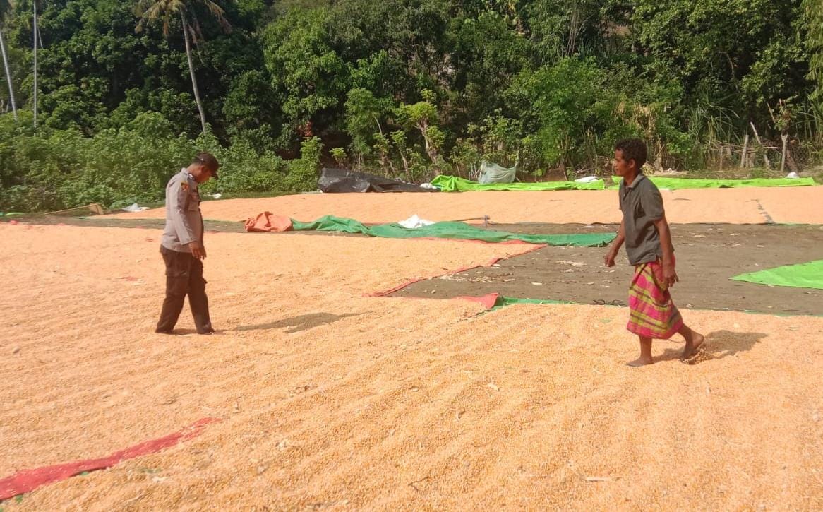 Pada Senin (23/06/25) siang kemarin Bhabinkamtibmas Polsek Soromandi Bripka Sukarna menyambangi dan membantu proses pengeringan jagung warga binaan di Desa Sampungu Kecamatan Soromandi Kabupaten Bima.